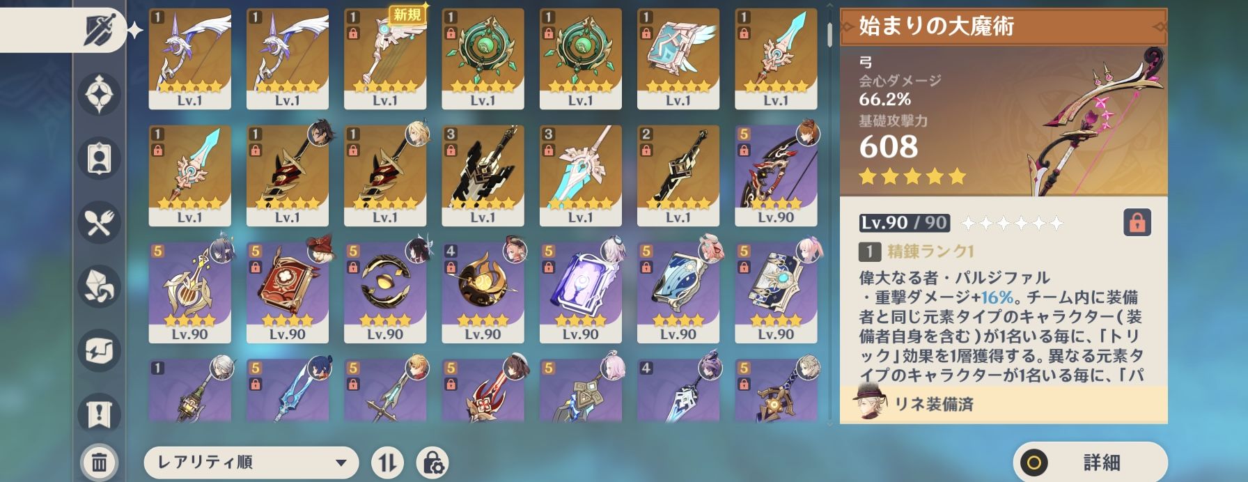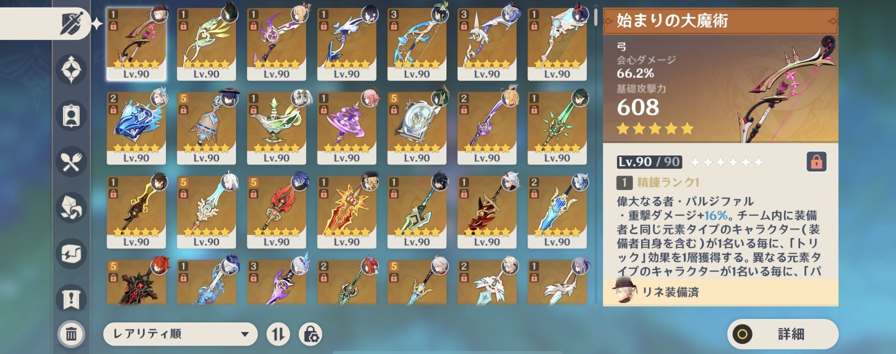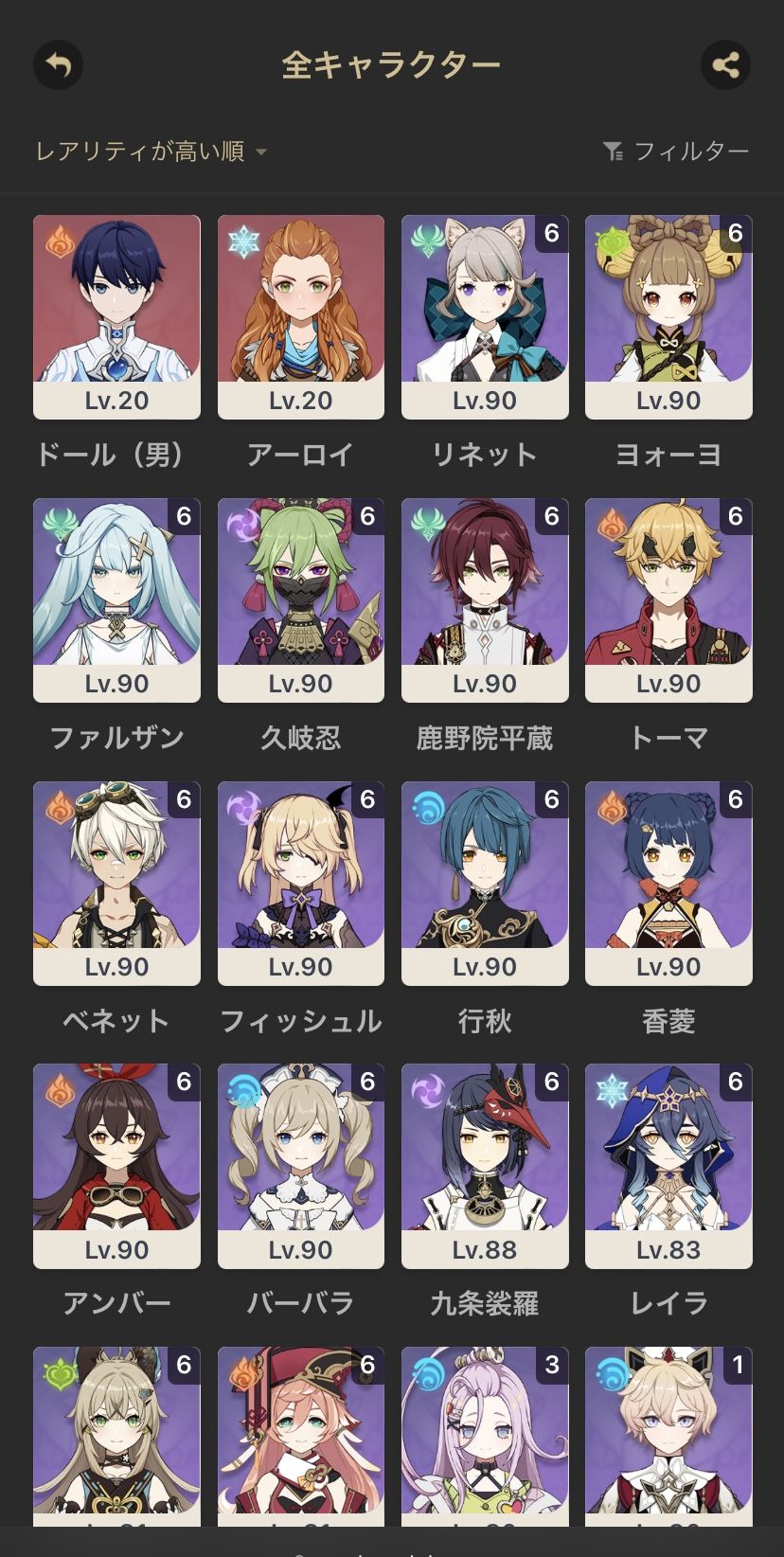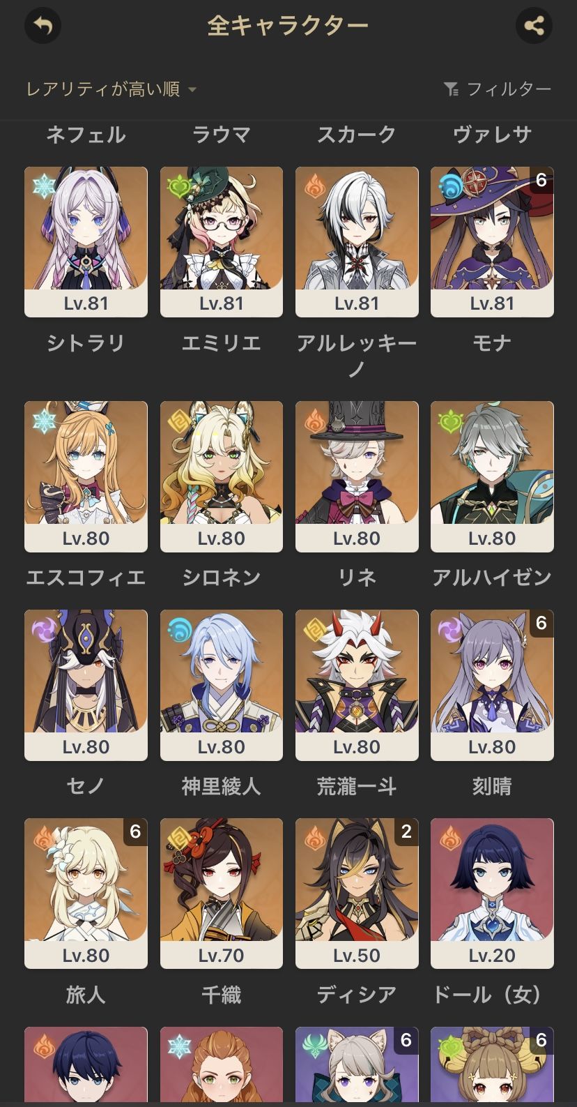 ・無主の星屑22個、祈聖のエリクシル18個所持してる為お好きなキャラをLv.100にする事や聖遺物厳選も可能かと思います✨️