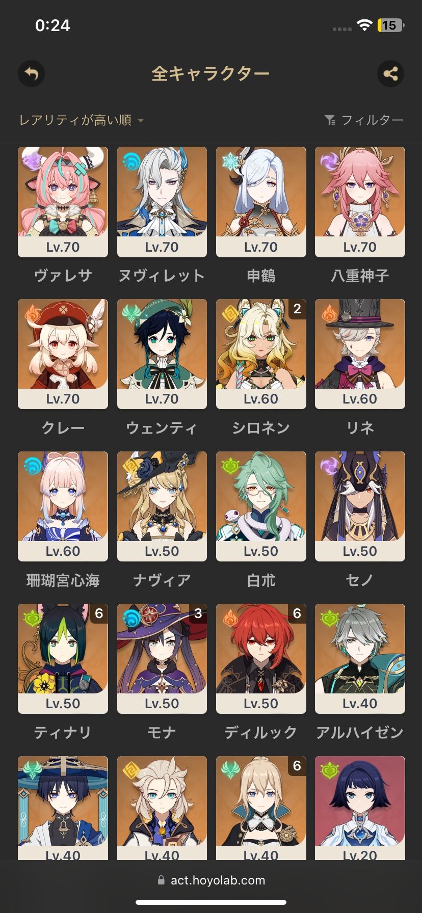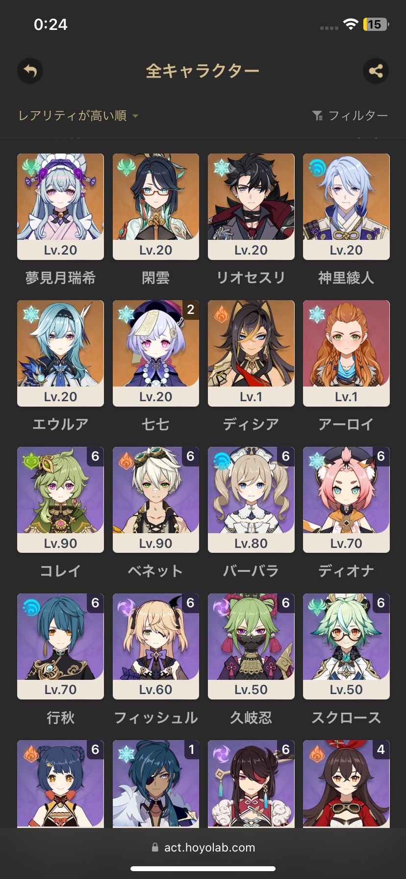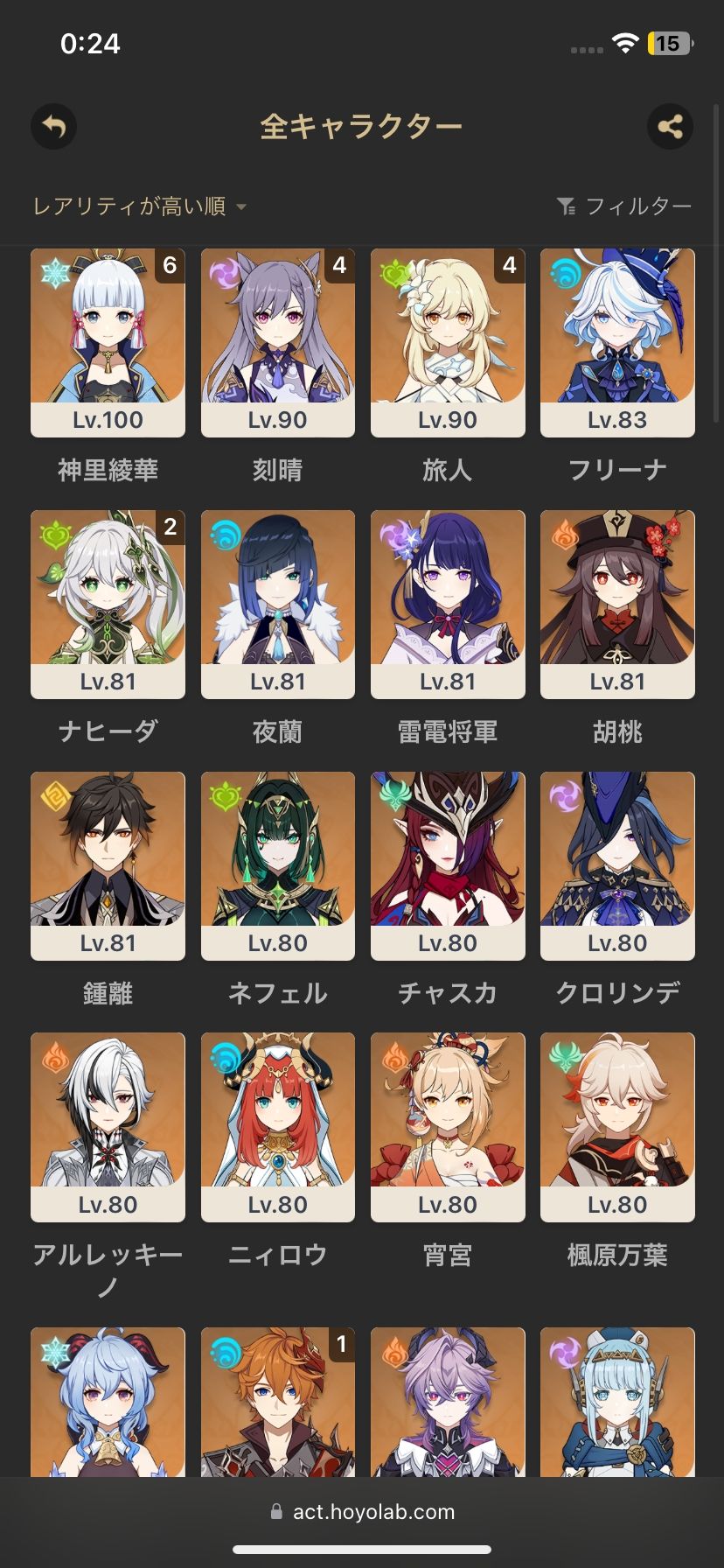 ・神里綾華完凸、ティナリ完凸、ディルック完凸、ジン完凸してます✨️