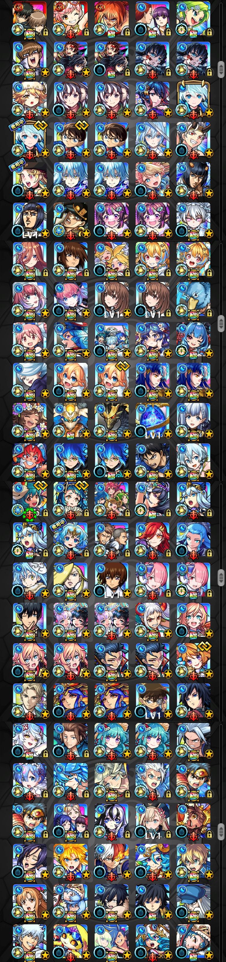 アカウント特定防止といった観点から、主なモンスターを抜粋して記載させていただいております。