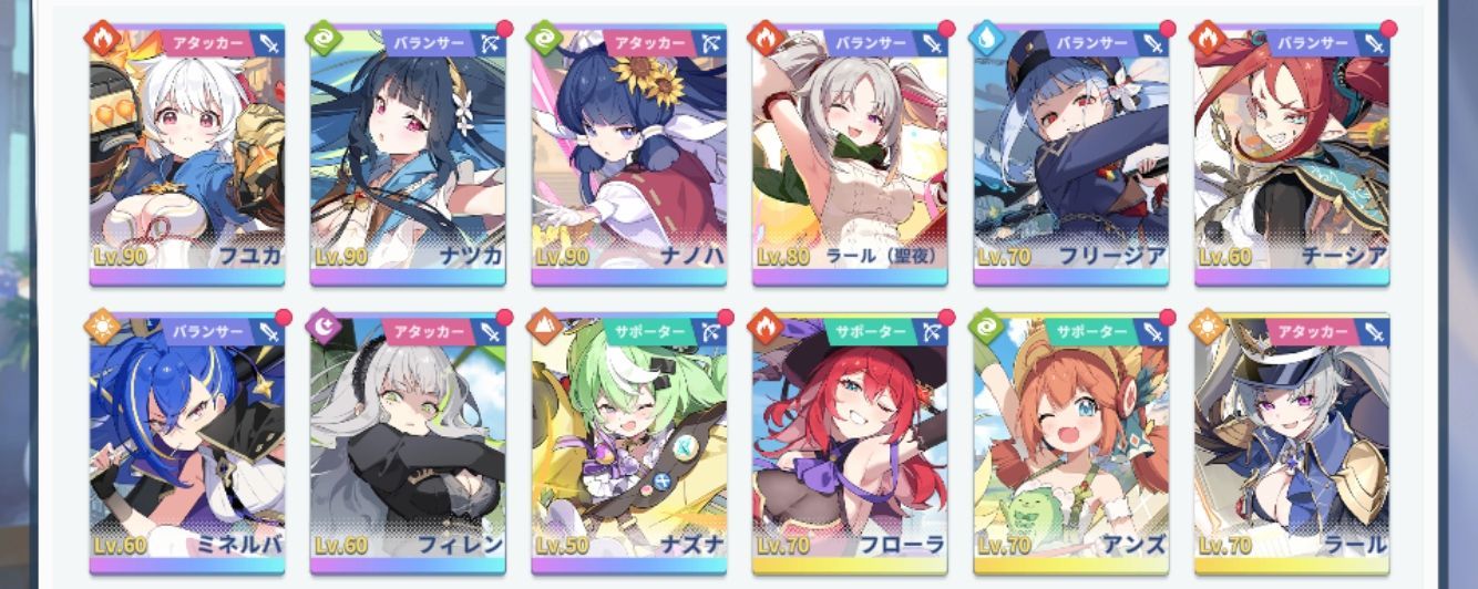 アカウント特定防止といった観点から、主なキャラクターを抜粋して記載させていただいております。