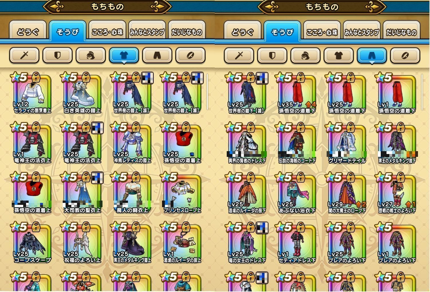 下記のようなそうびを所持しております。(一部抜粋)