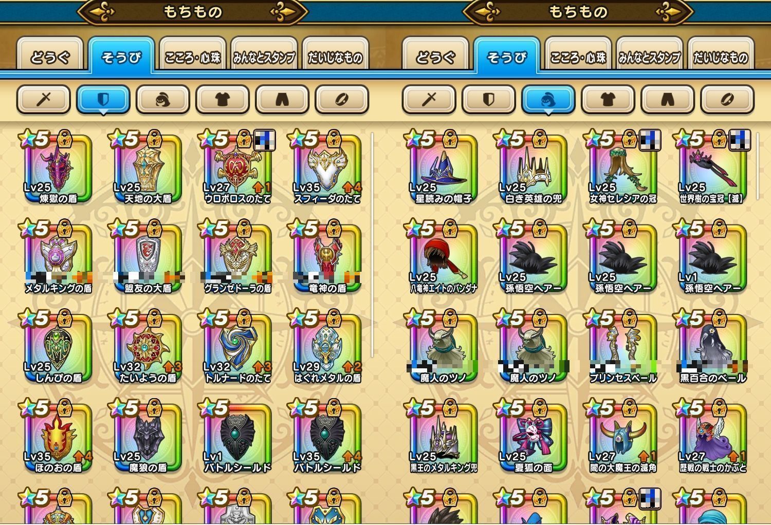 アカウント特定防止といった観点から、主な武具・こころを抜粋して記載させていただいております。