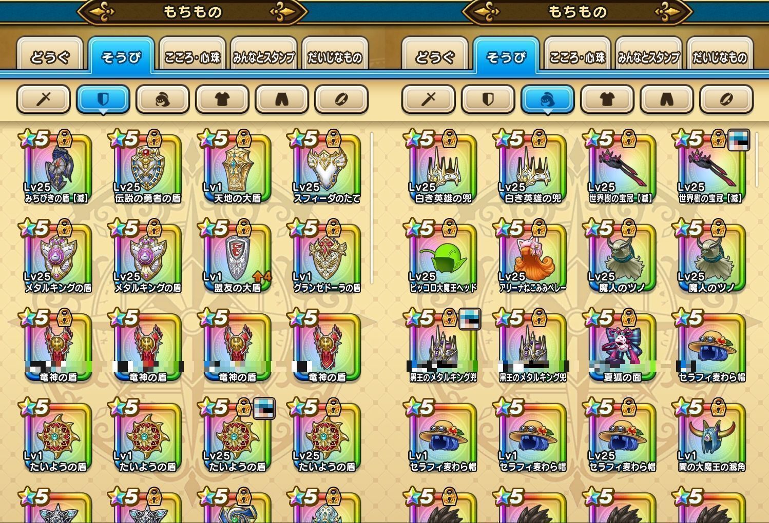 下記のようなそうびを所持しております。(一部抜粋)