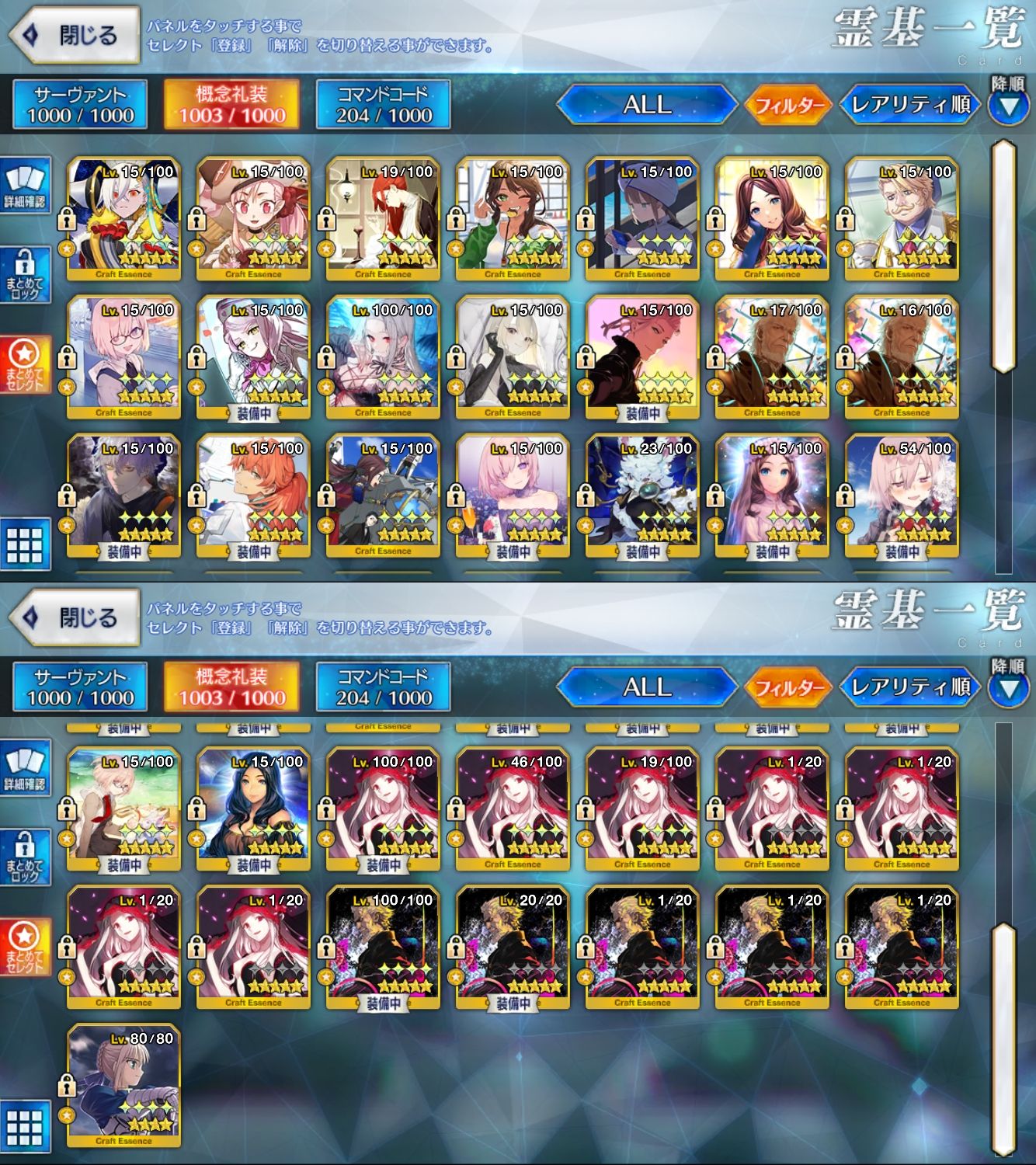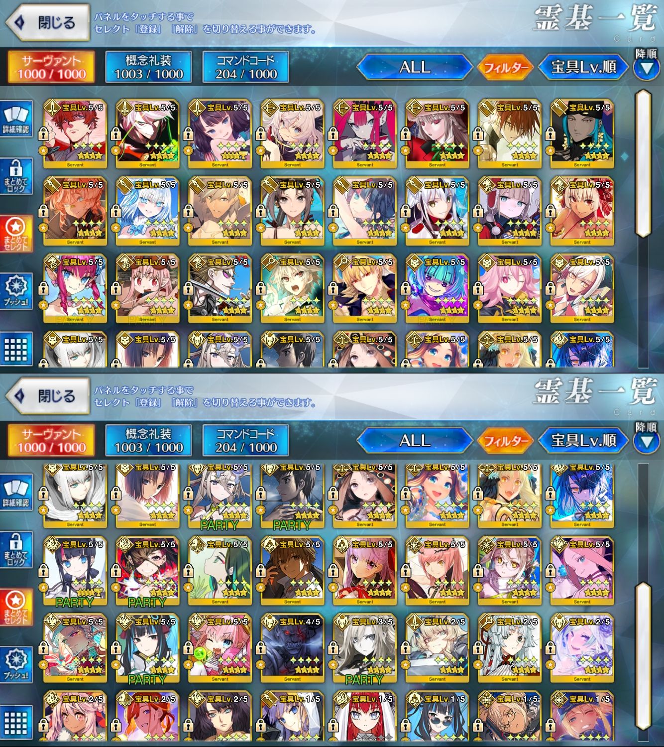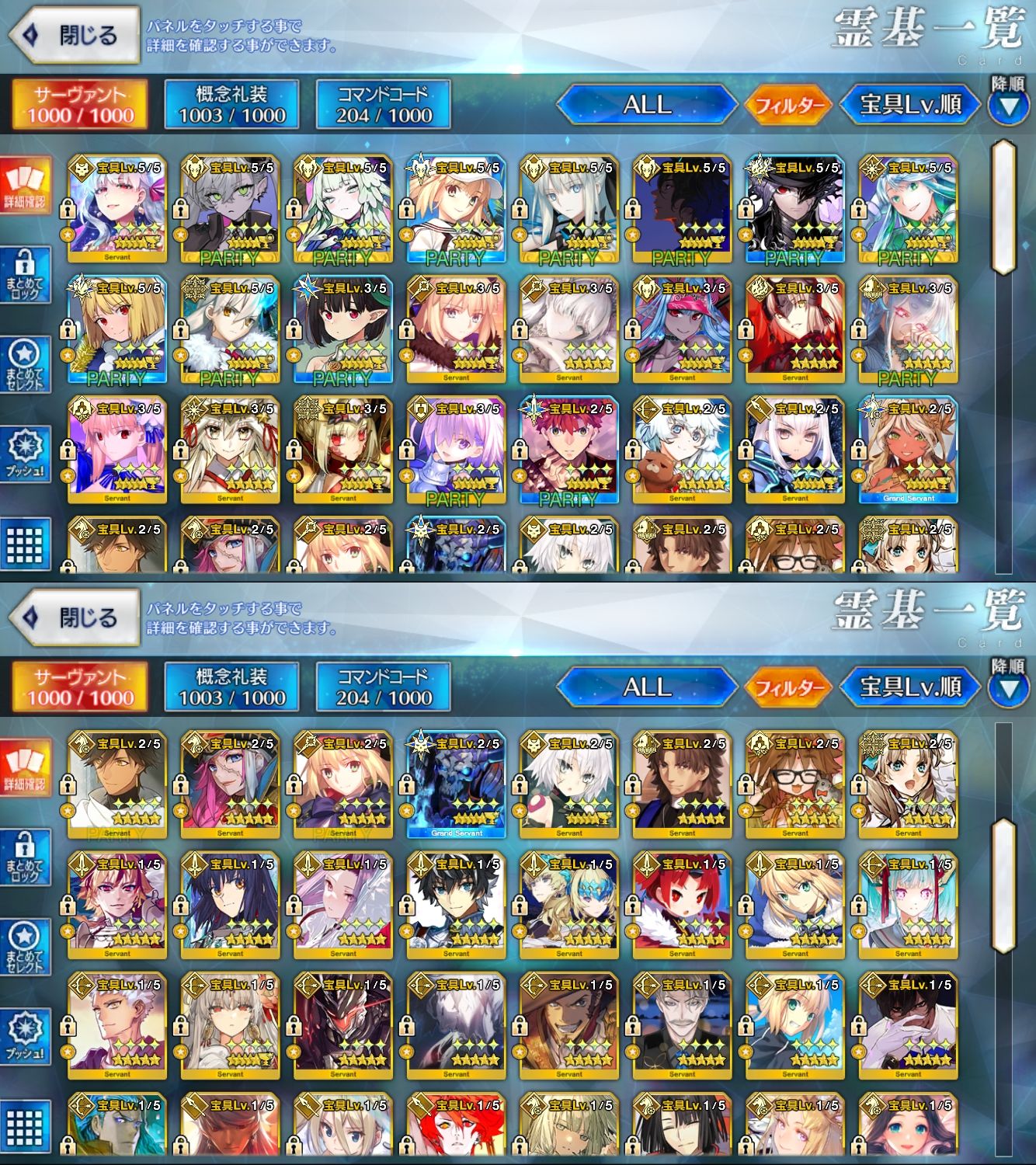 星5サーヴァントの数は累計入手数です。