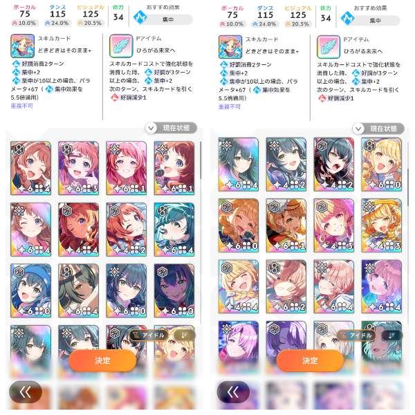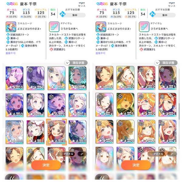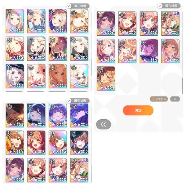 咲季/麻央/星南/美鈴/佑芽/莉波の総合ランキング10位以内パーツ所持、アイドル強化月間の50位以内パーツは全所持