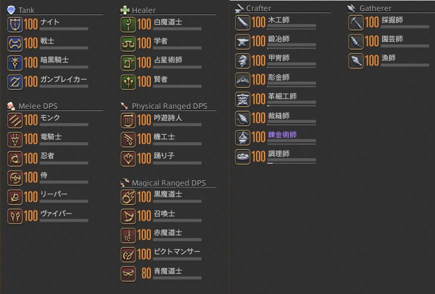 武器装備はレンジDPSが750くらいで他はあまり更新できておりません