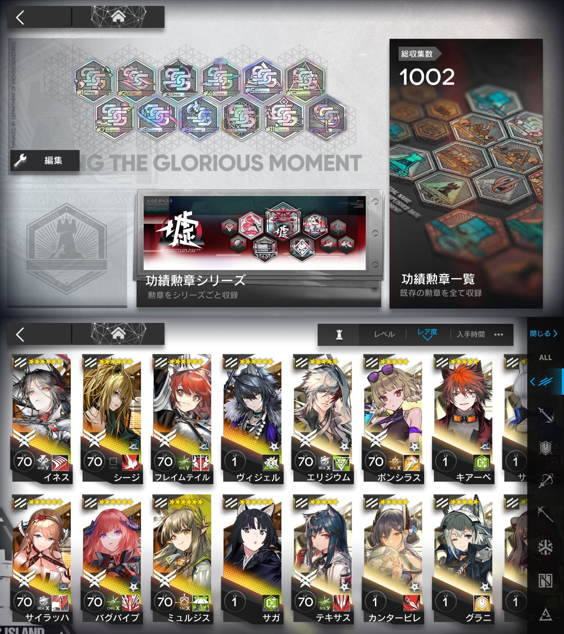コンテンツは生息演算と統合戦略#5以外は全てクリア、勲章コンプ加工済み