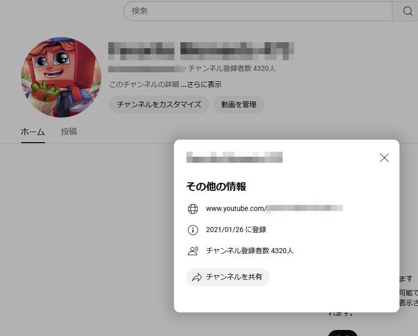 登録者4320人のYouTubeチャンネルの販売です。
