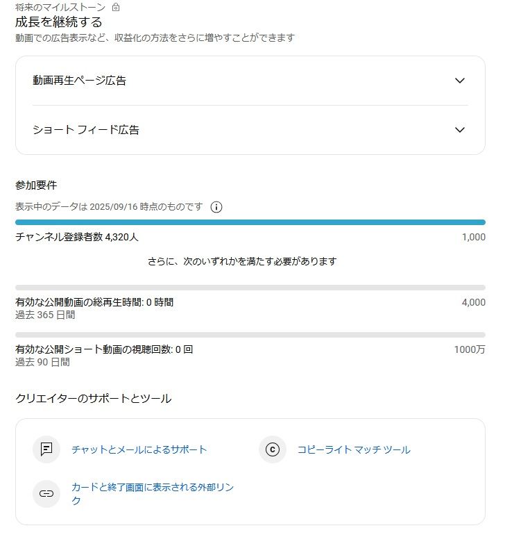 ✔収益化条件のうち、難しいと言われている「登録者1000人」をクリア済みなので、収益化までの期間を短縮出来る。
