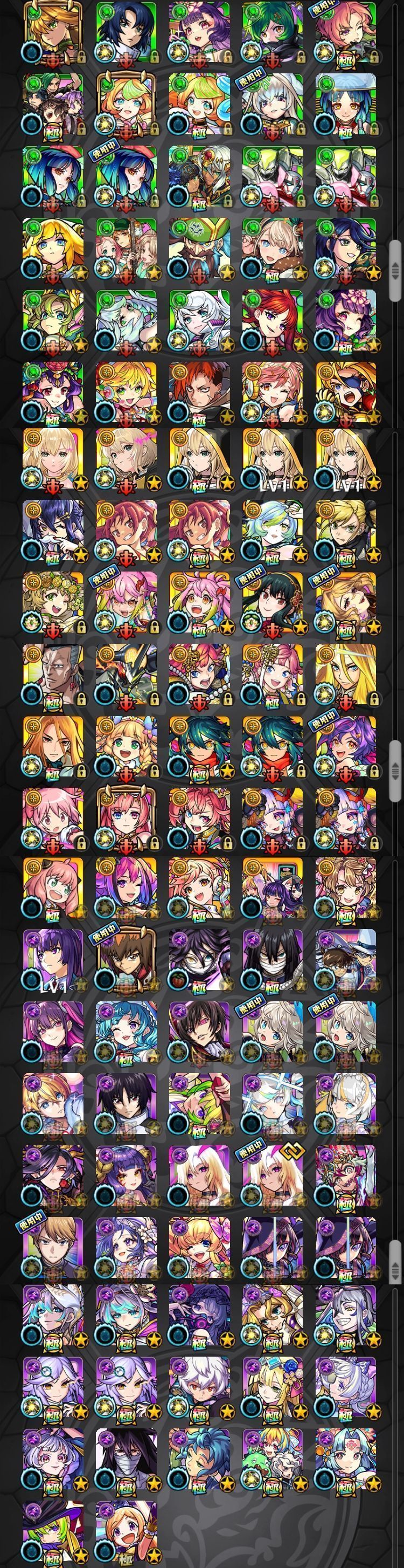 アカウント特定防止といった観点から、主なモンスターを抜粋して記載させていただいております。