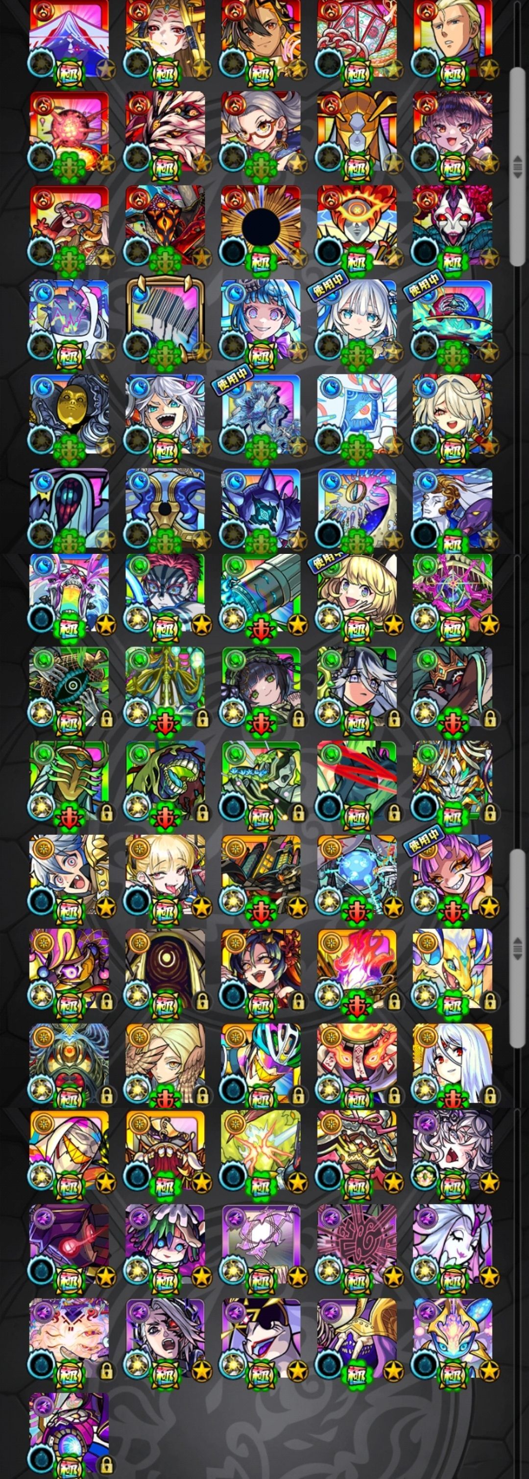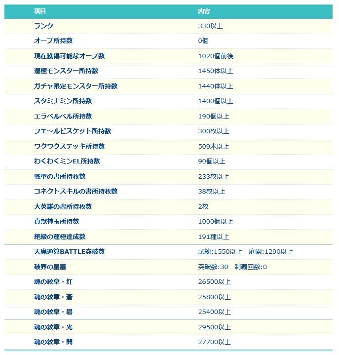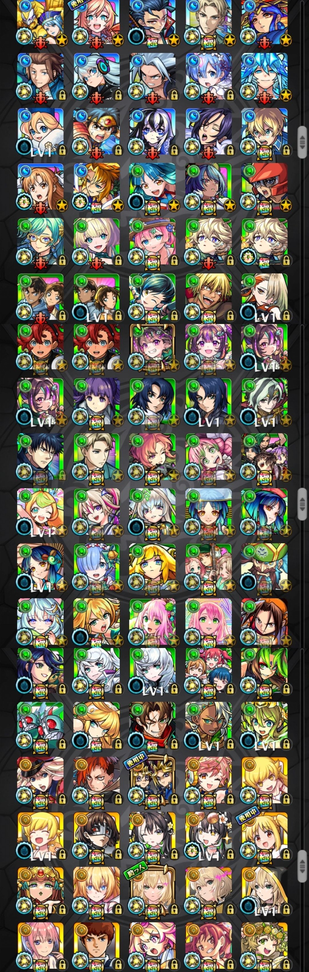 アカウント特定防止といった観点から、主なモンスターを抜粋して記載させていただいております。