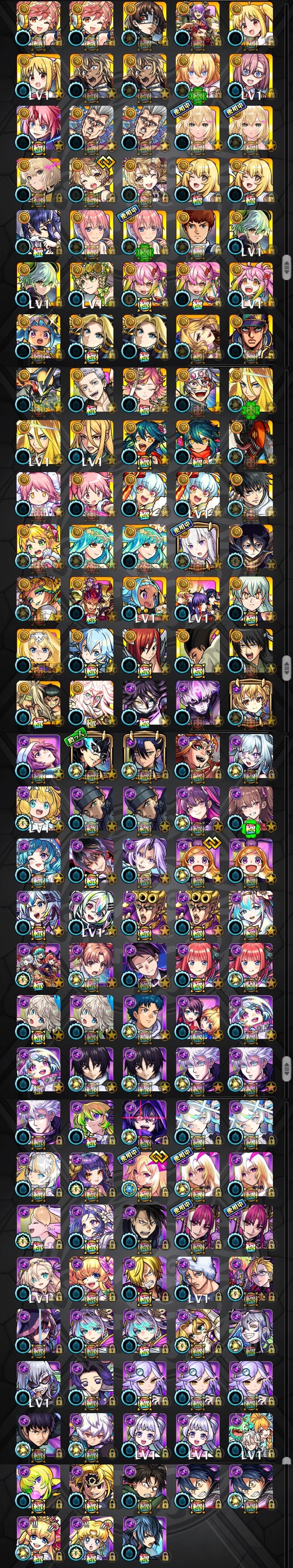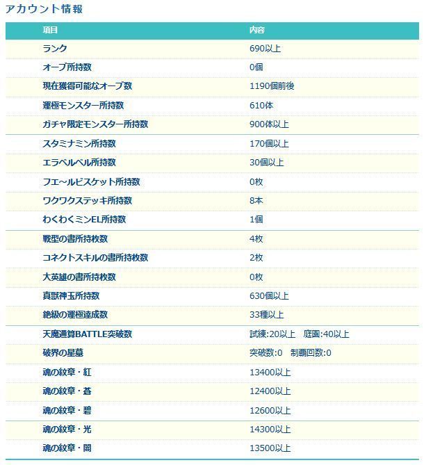アカウント特定防止といった観点から、主なモンスターを抜粋して記載させていただいております。