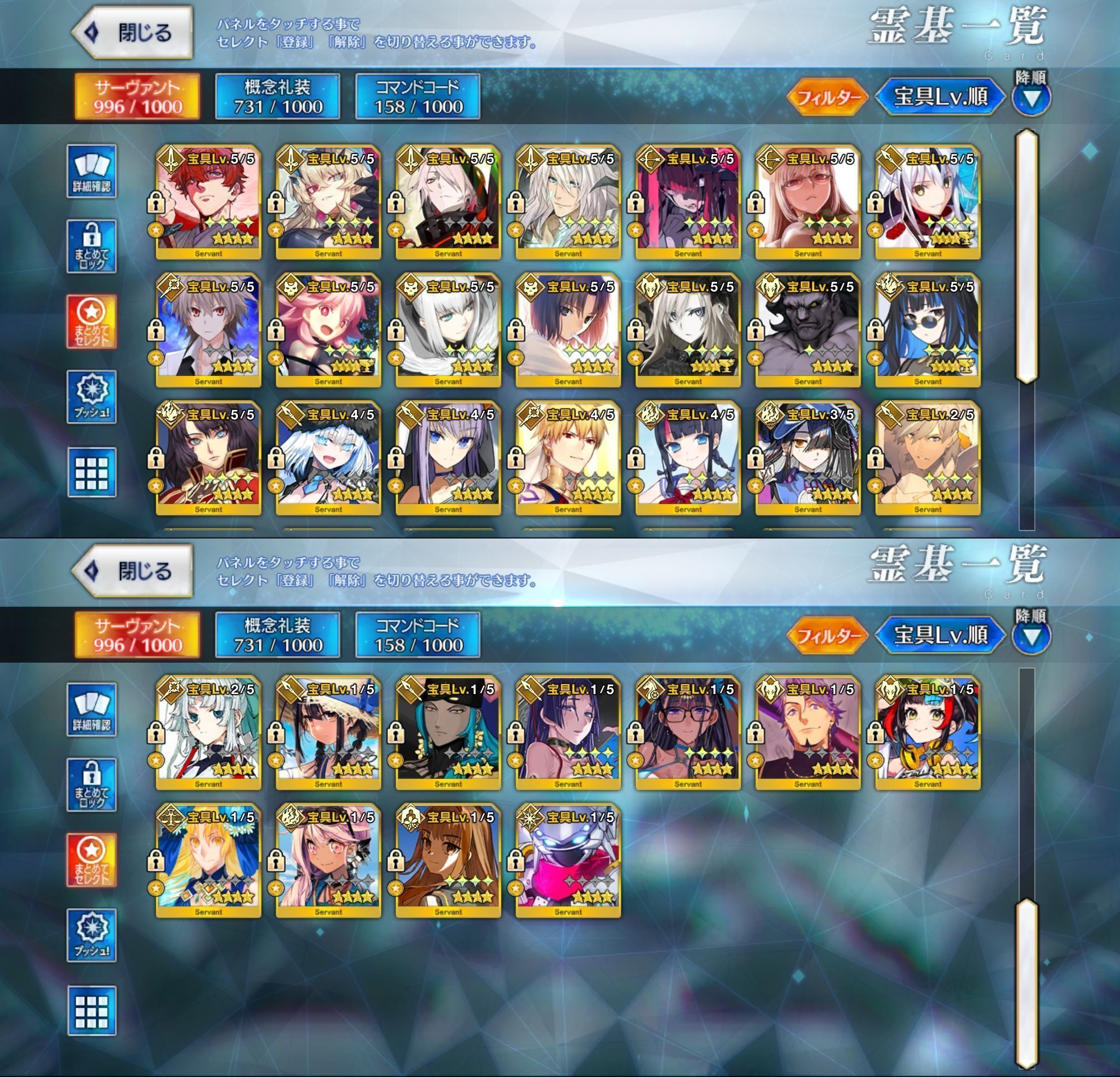 星5サーヴァントの数は累計入手数です。