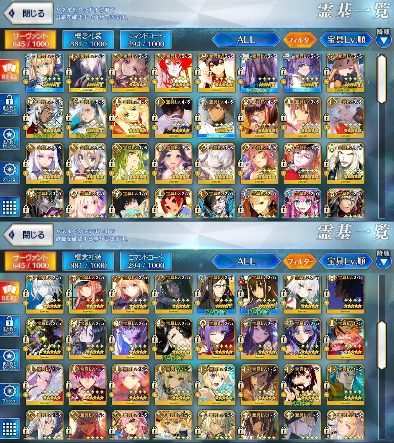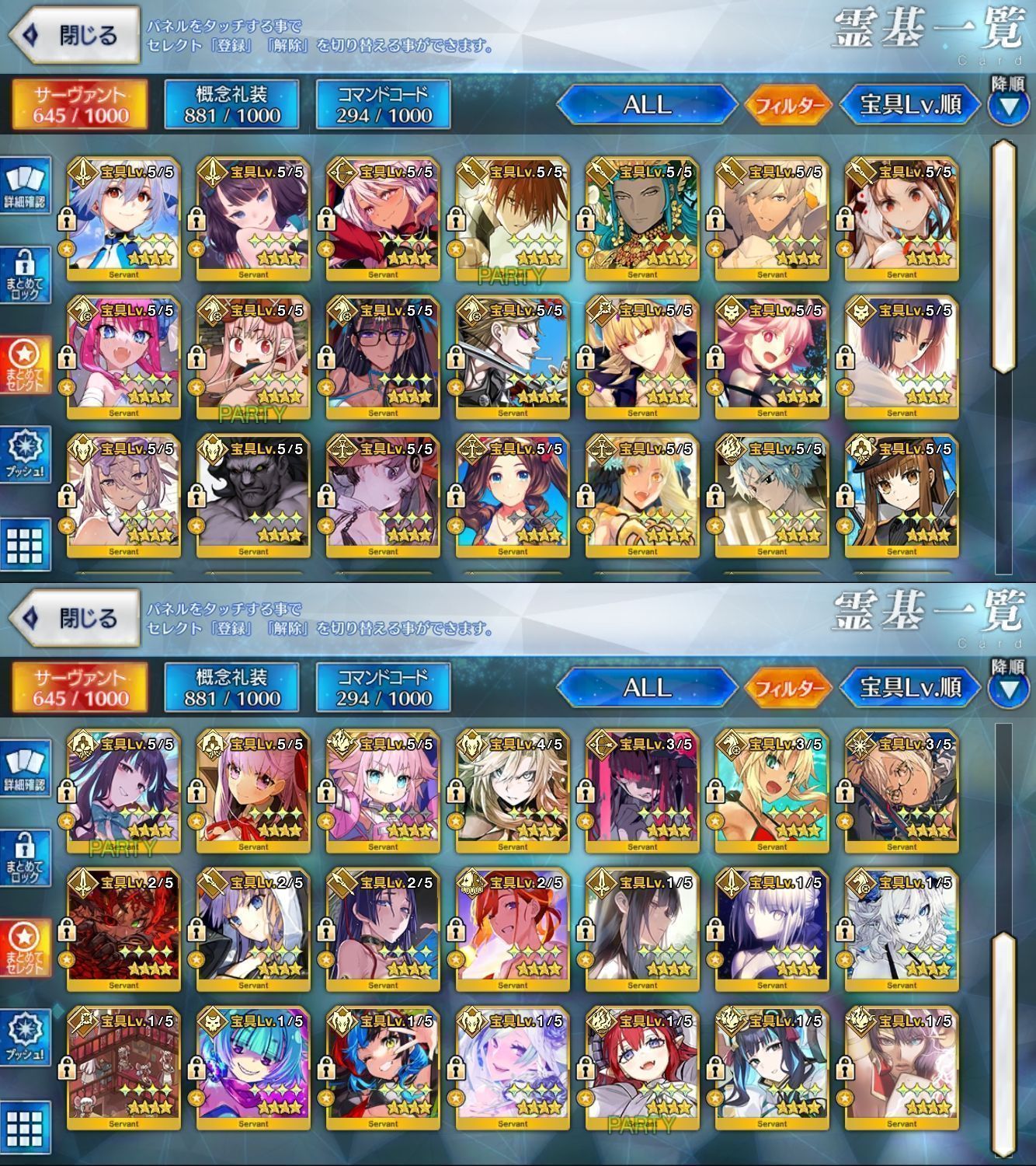 星5サーヴァントの数は累計入手数です。
