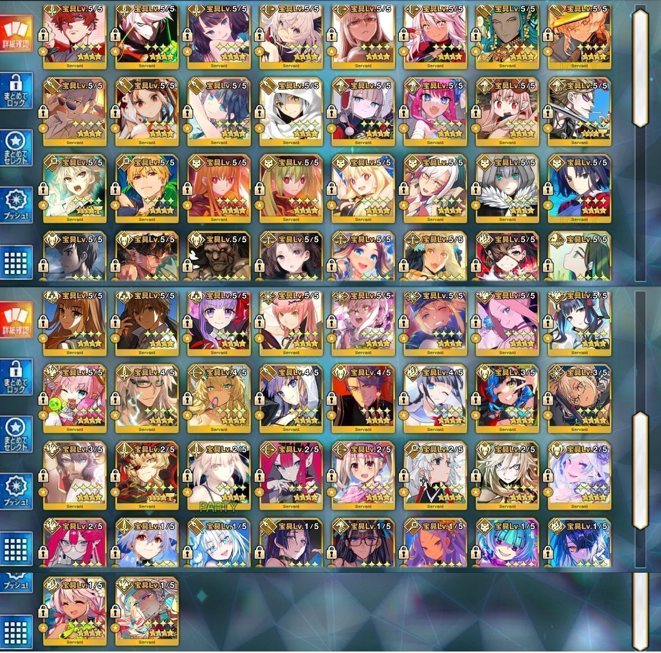 星5サーヴァントの数は累計入手数です。