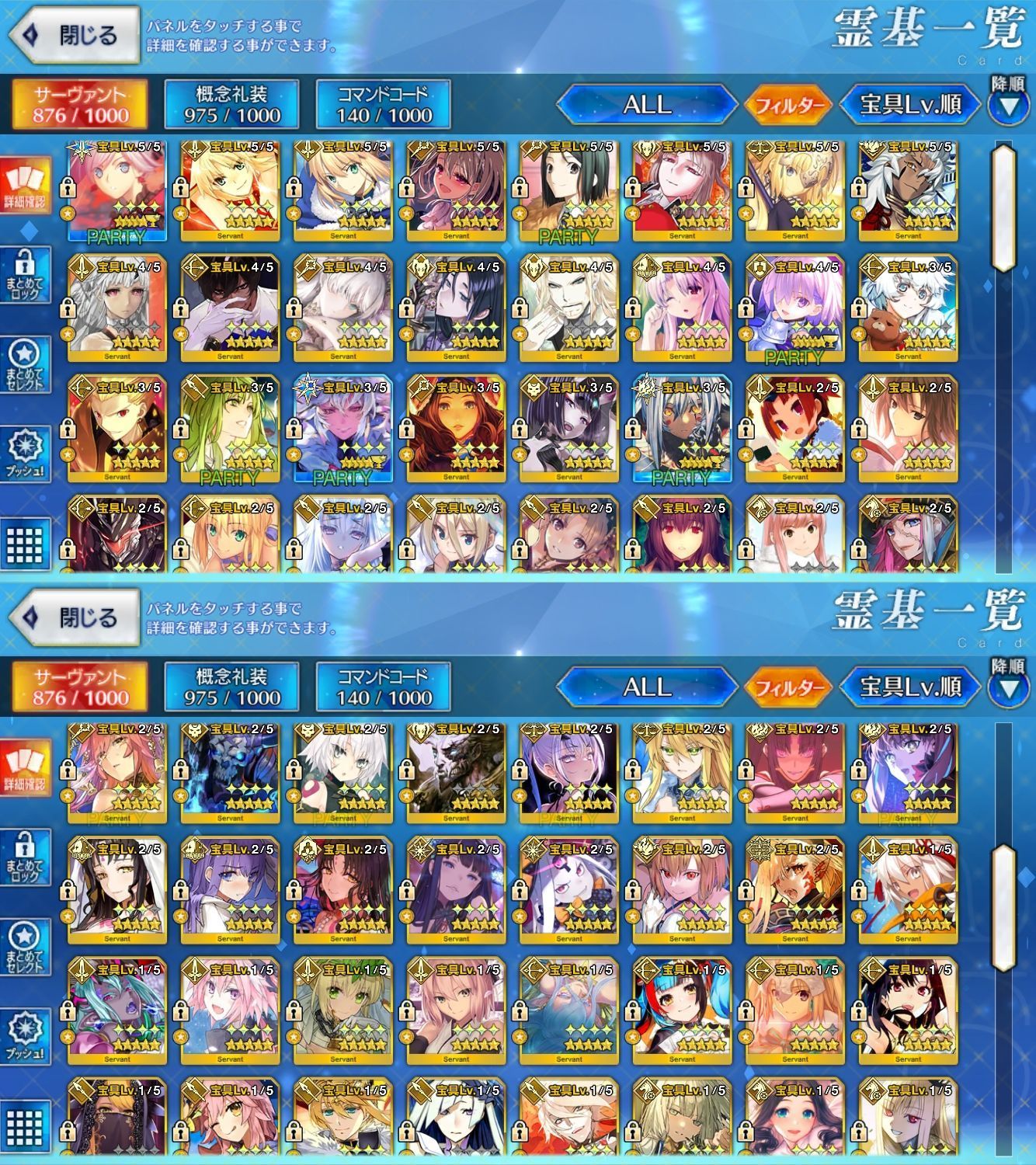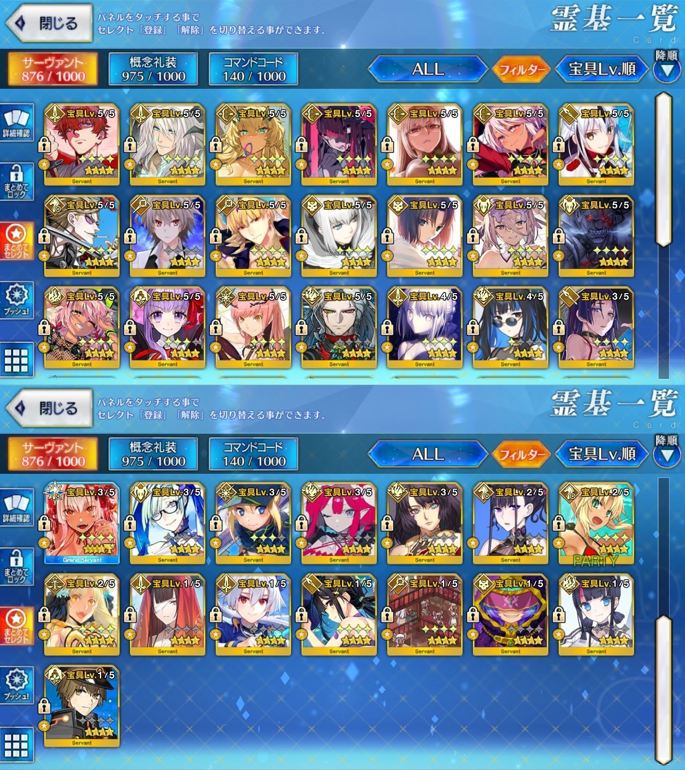 重複分は宝具強化に使用しているため、累計入手数=★5サーヴァントの宝具レベル合計値となります。
