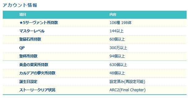 アカウント特定防止といった観点から主なサーヴァントを抜粋して掲載しております。