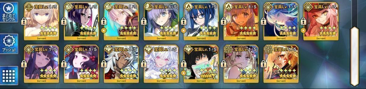 アカウント特定防止といった観点から主なサーヴァントを抜粋して掲載しております。