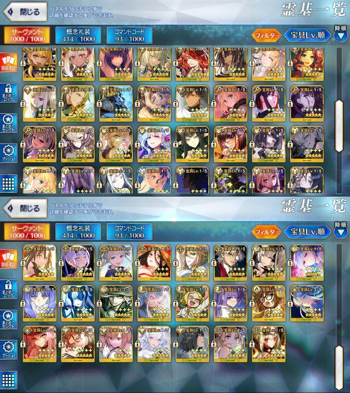 星5サーヴァントの数は累計入手数です。