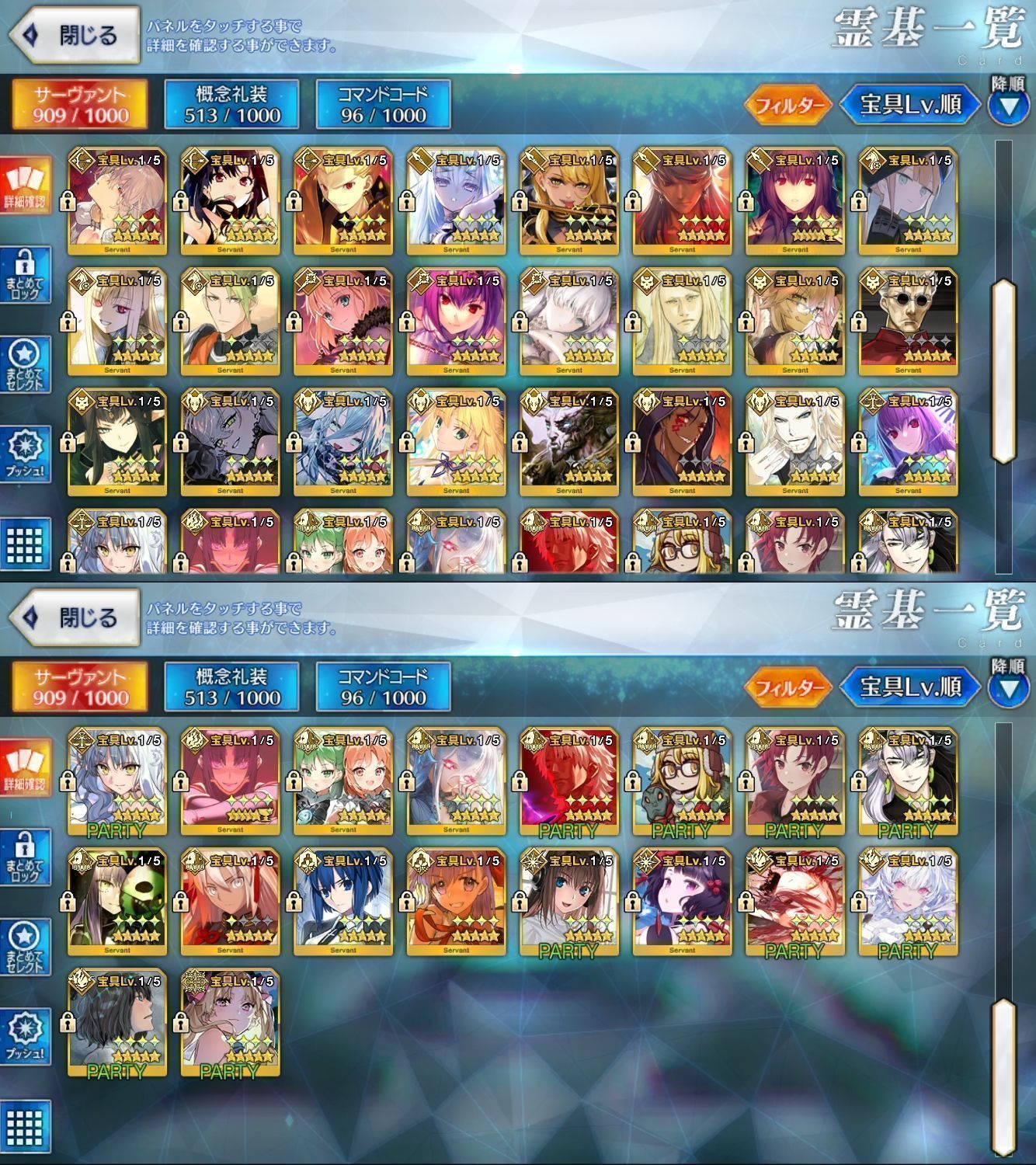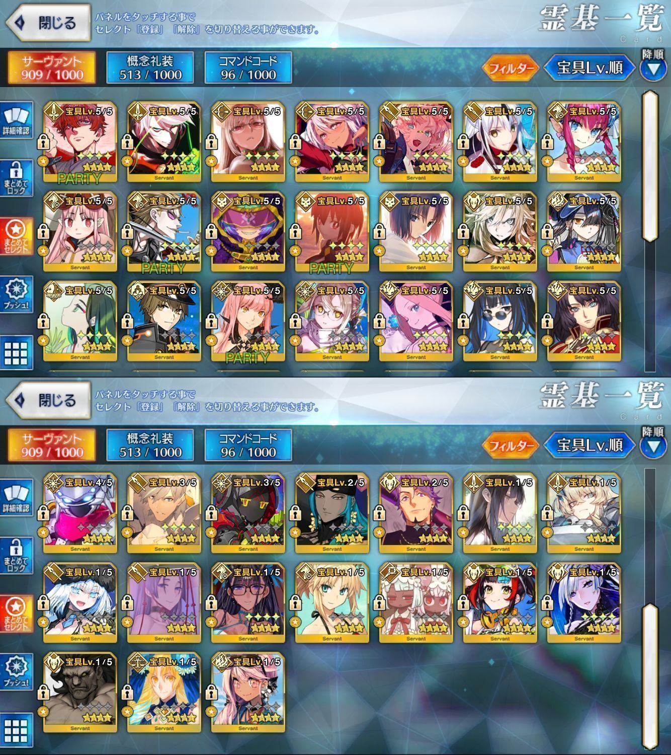 星5サーヴァントの数は累計入手数です。