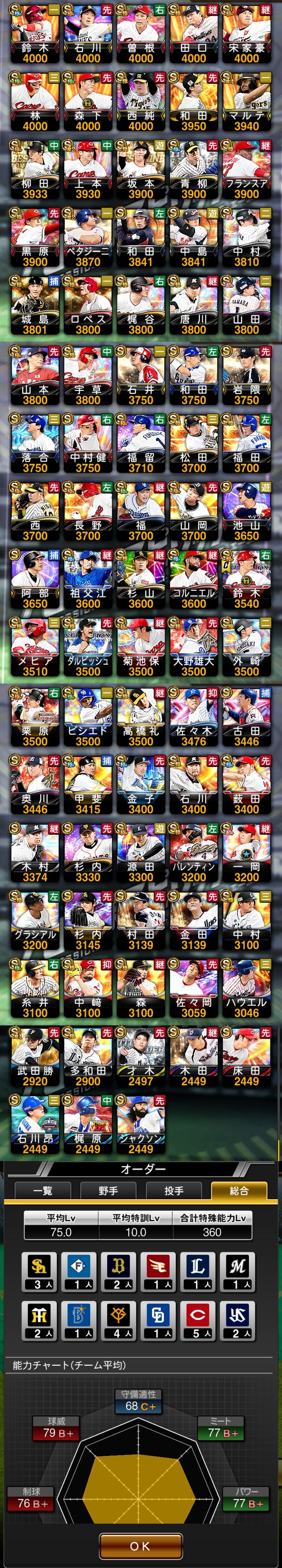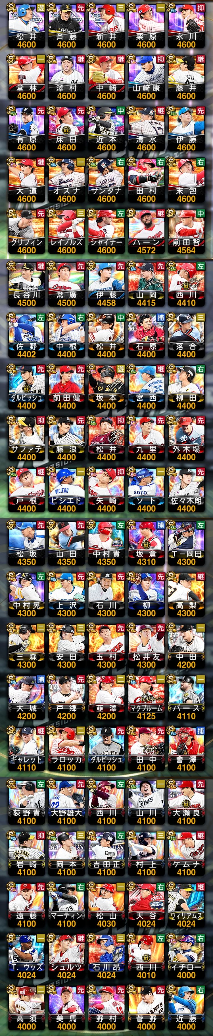 アカウント特定防止といった観点から、主な選手を抜粋して記載させていただいております。
