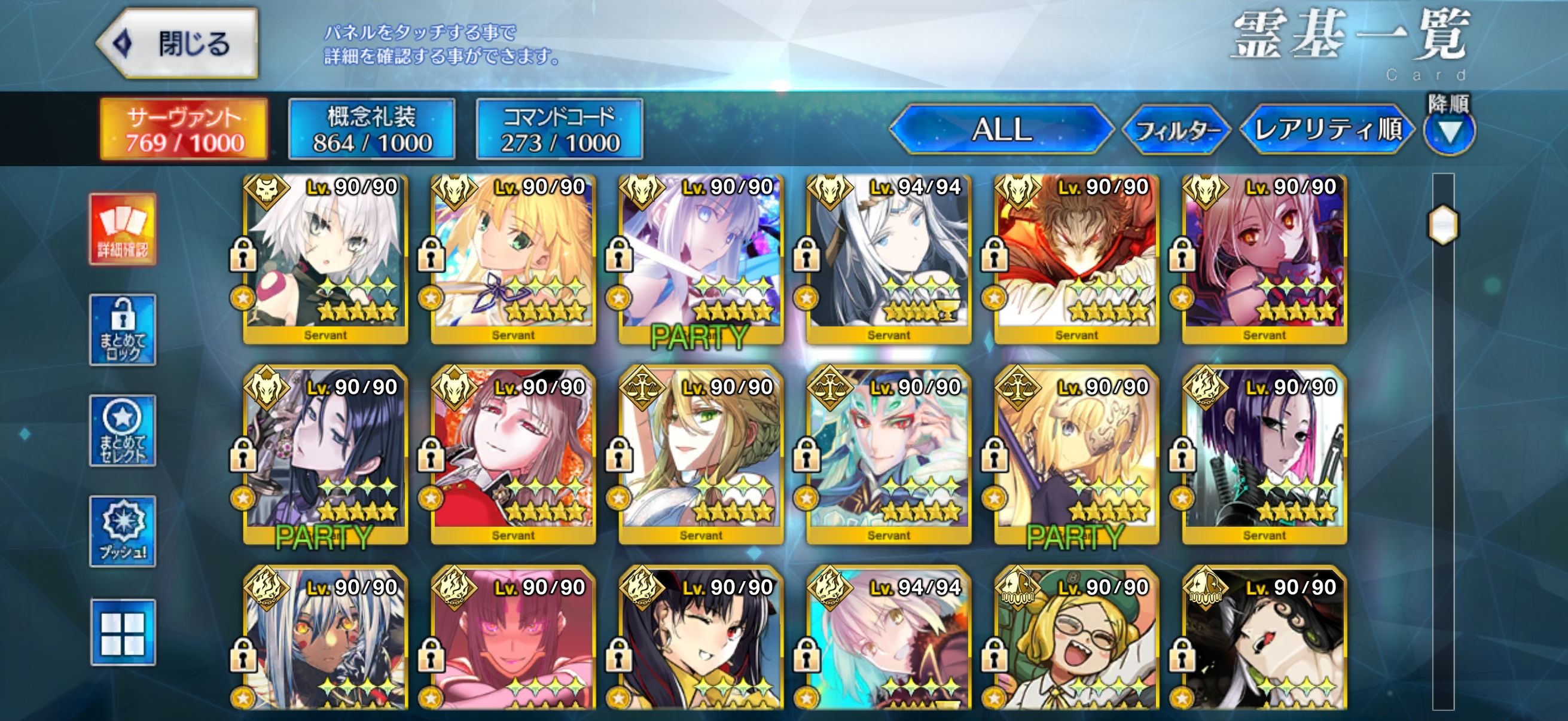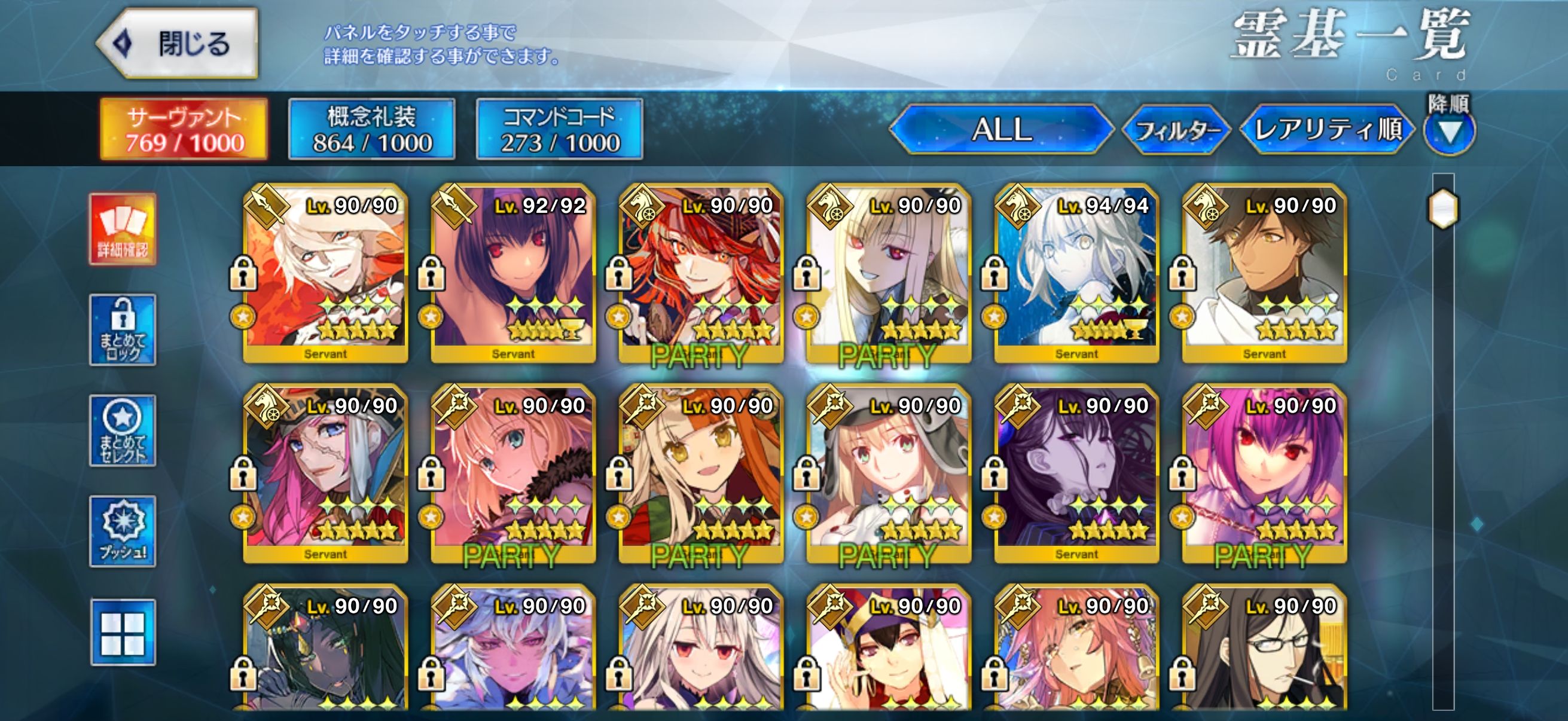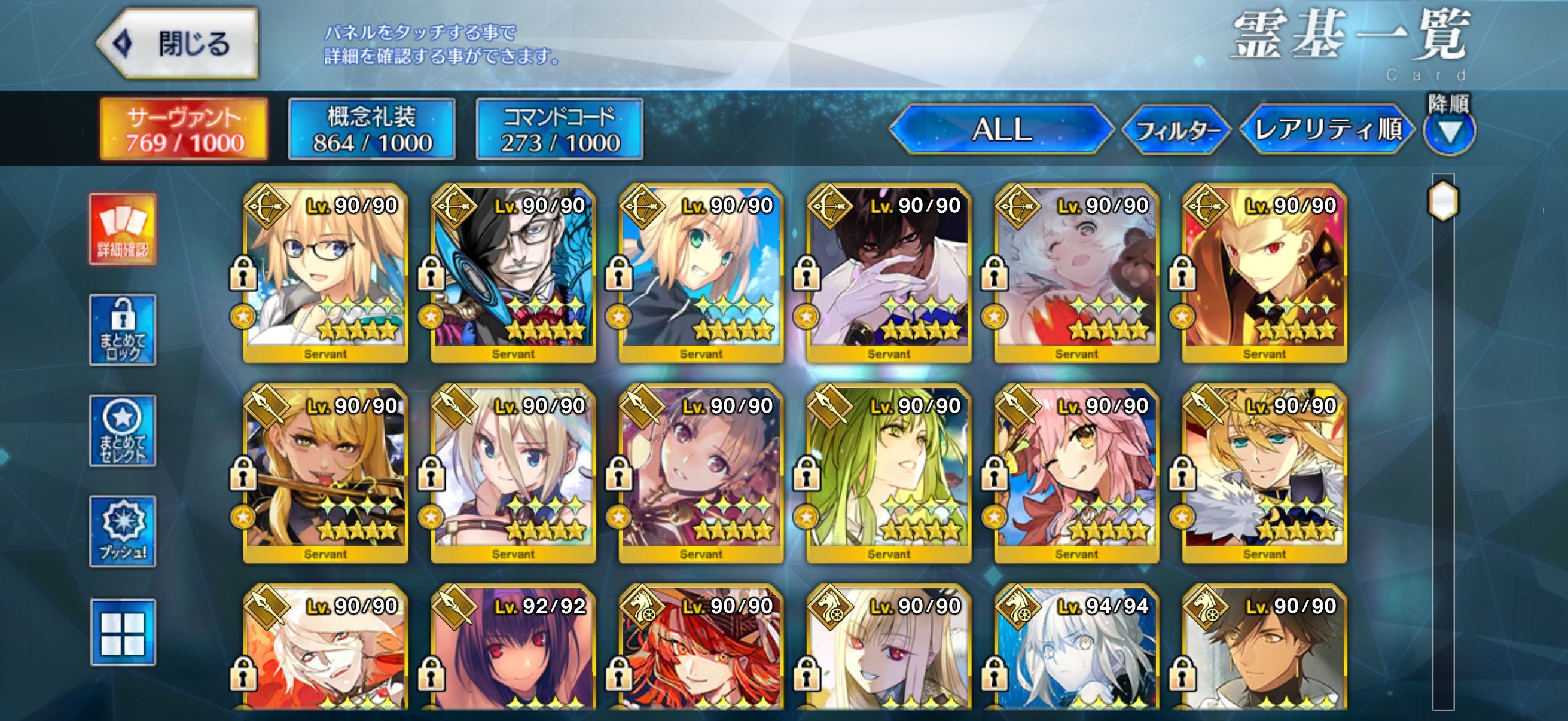 所有サーヴァント、礼装の詳細については画像をご確認ください。星5礼装については、載せきれていないものもございます。