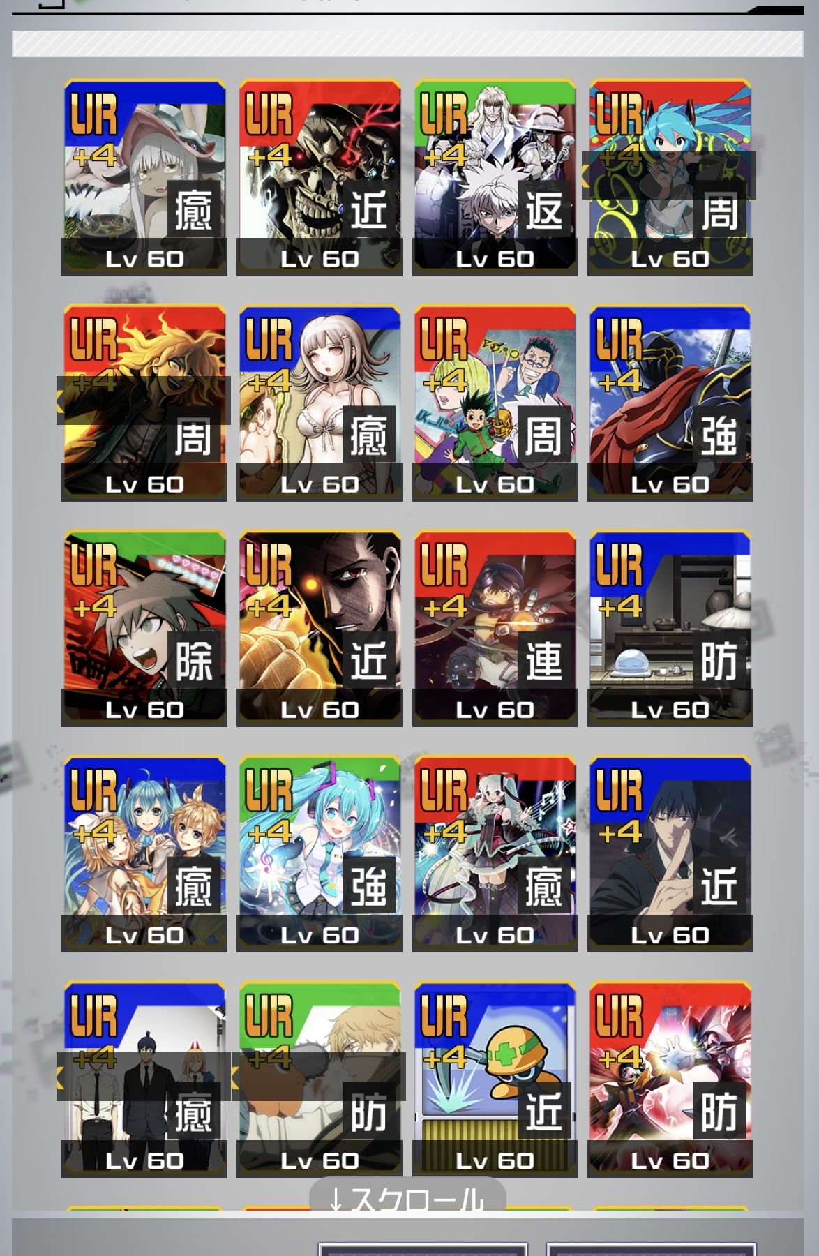 ダンガンロンパ、ミク、ハンターハンター、オバロ、チェンソーマン、ロックマン、転スラ、ペルソナ、メイドインアビス4凸アカウント