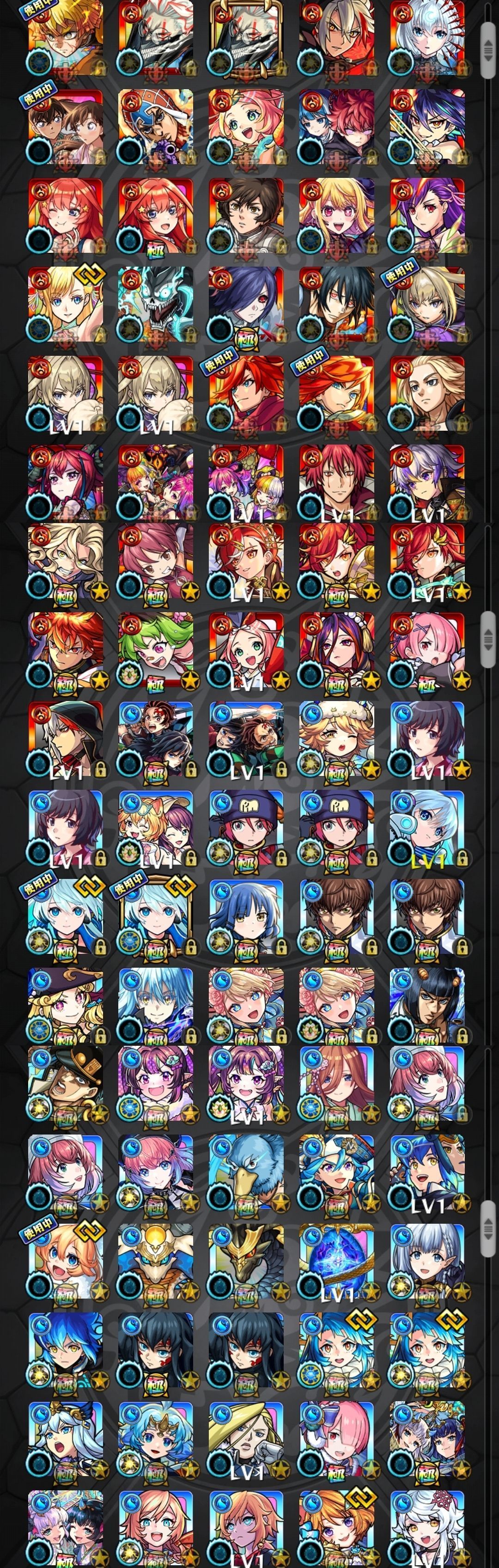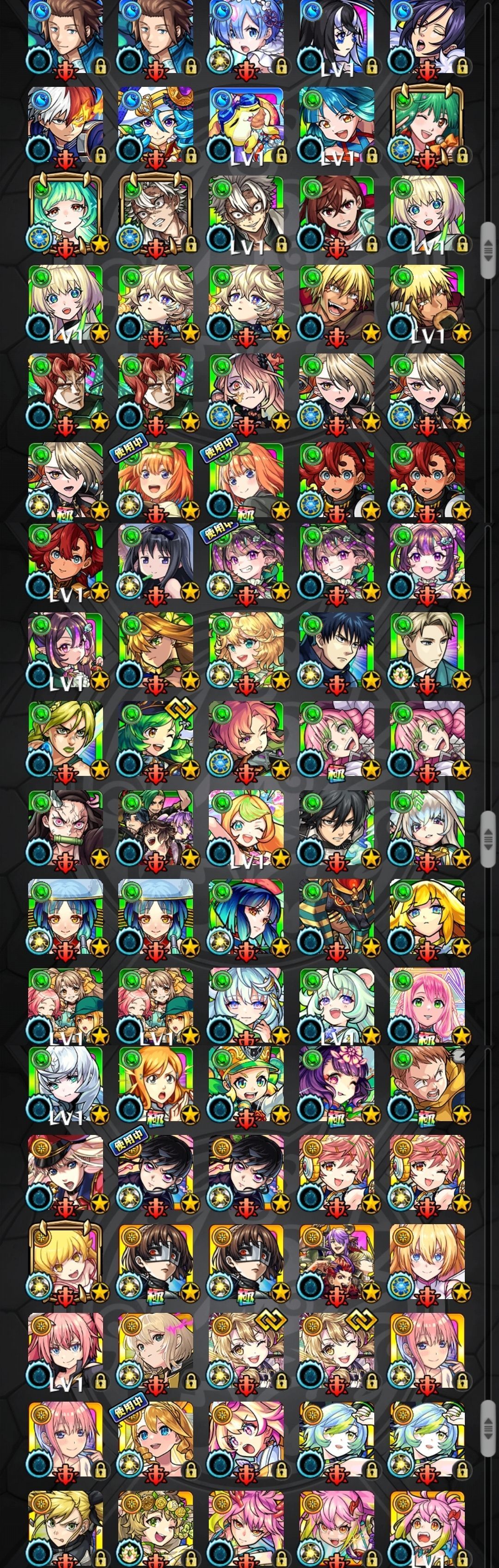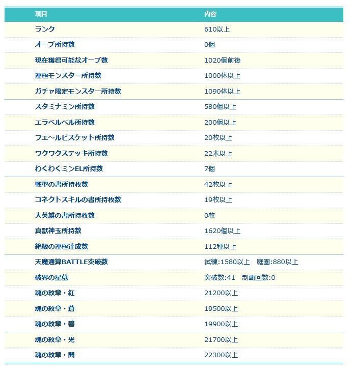 アカウント特定防止といった観点から、主なモンスターを抜粋して記載させていただいております。