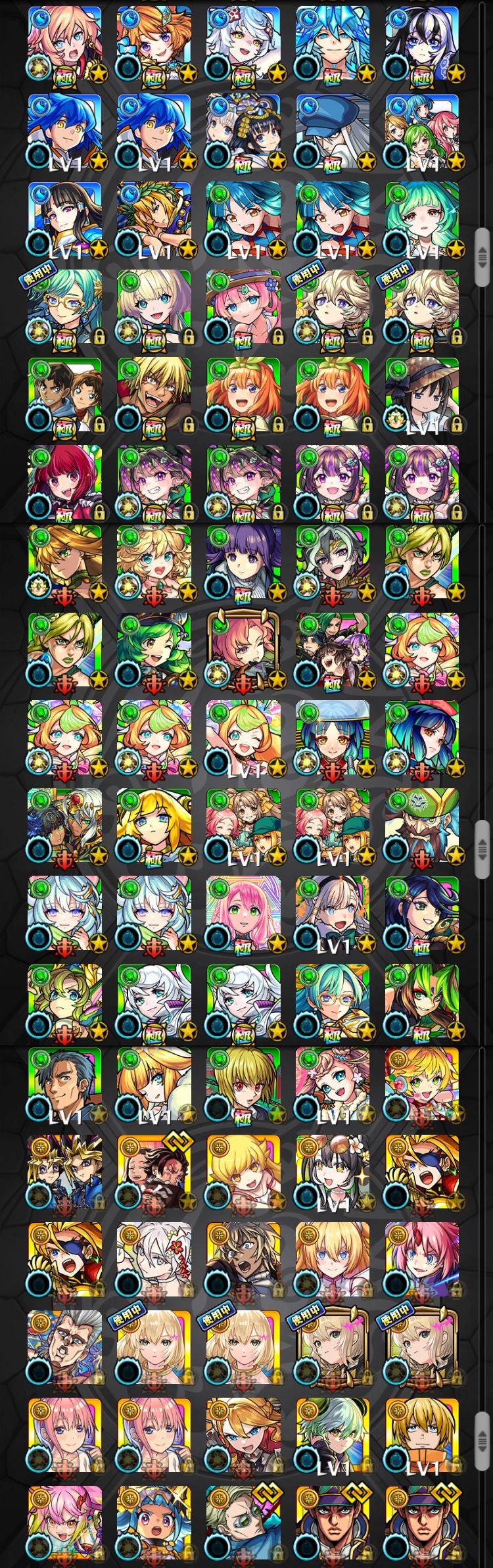 アカウント特定防止といった観点から、主なモンスターを抜粋して記載させていただいております。