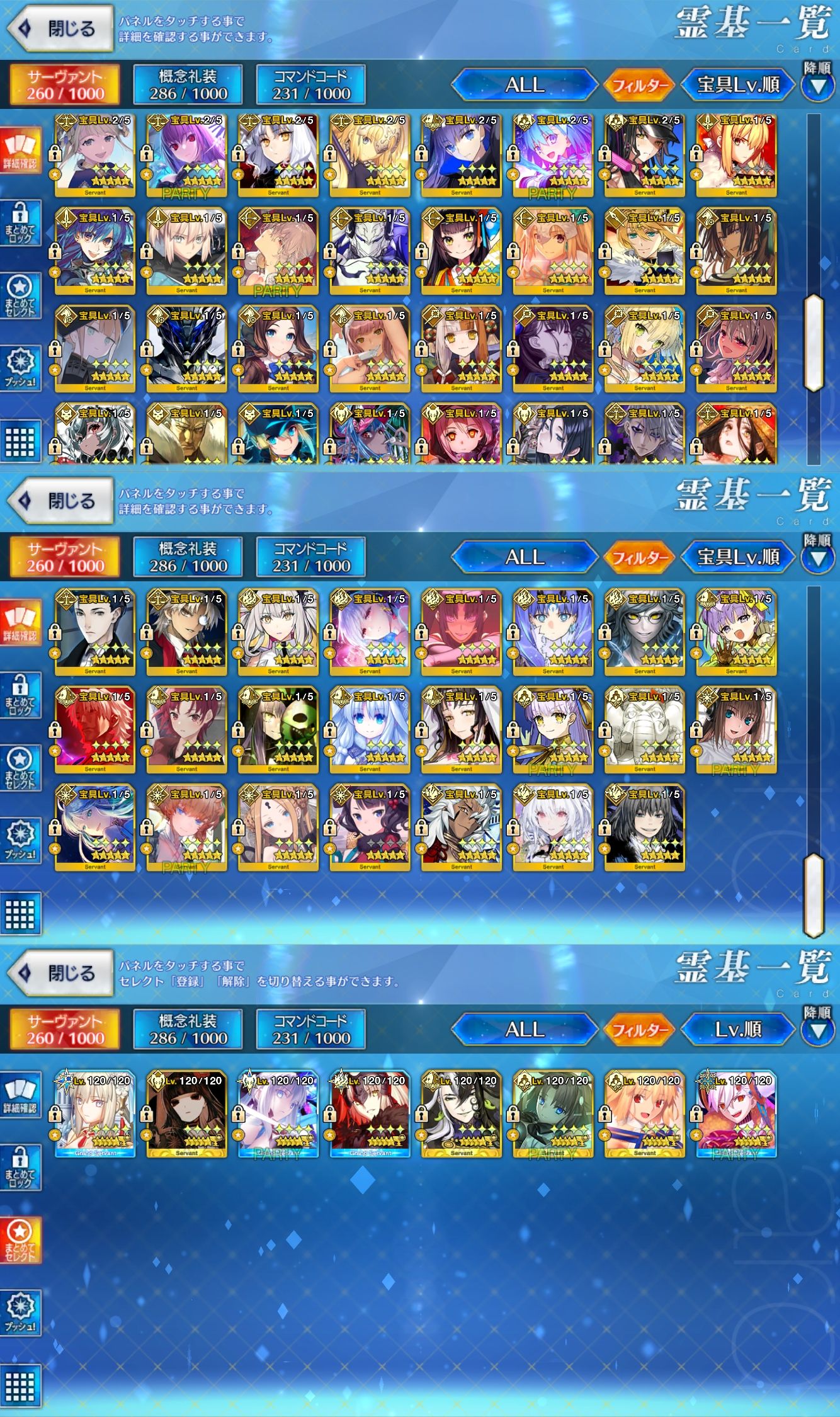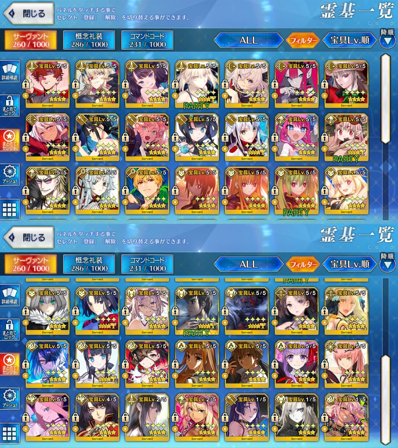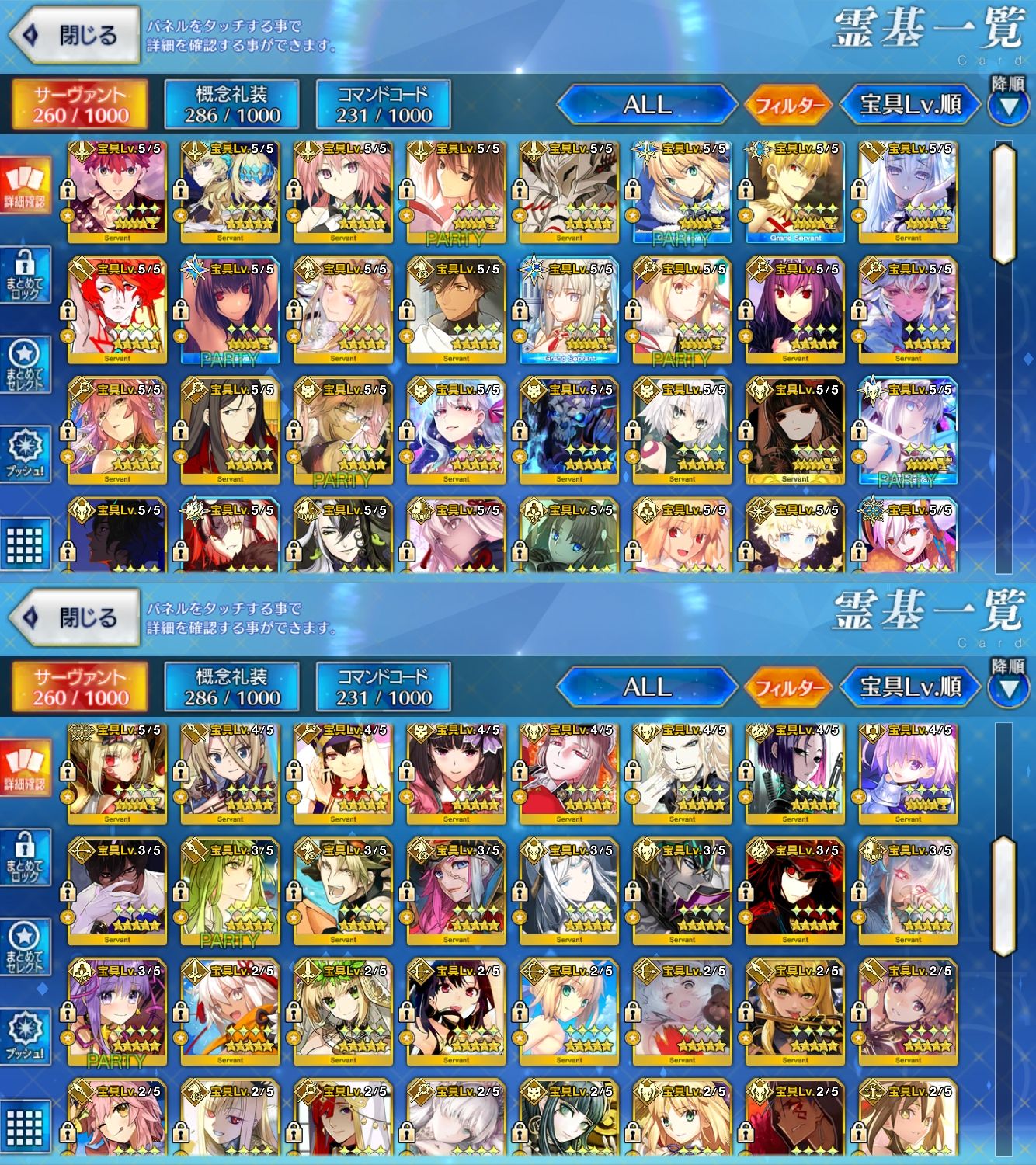 重複分は宝具強化に使用しているため、累計入手数=★5サーヴァントの宝具レベル合計値となります。