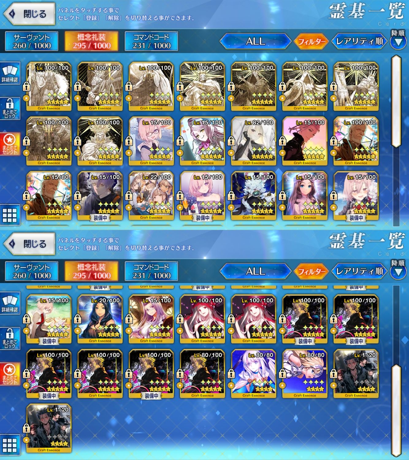 アカウント特定防止といった観点から主なサーヴァントを抜粋して掲載しております。