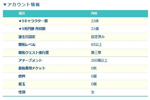 下記のようなキャラクター・光円錐を所持しております。(一部抜粋)