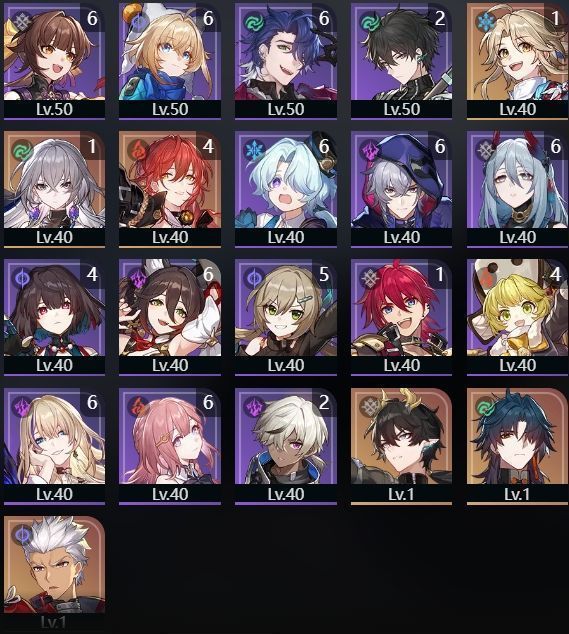 下記のようなキャラクター・光円錐を所持しております。(一部抜粋)