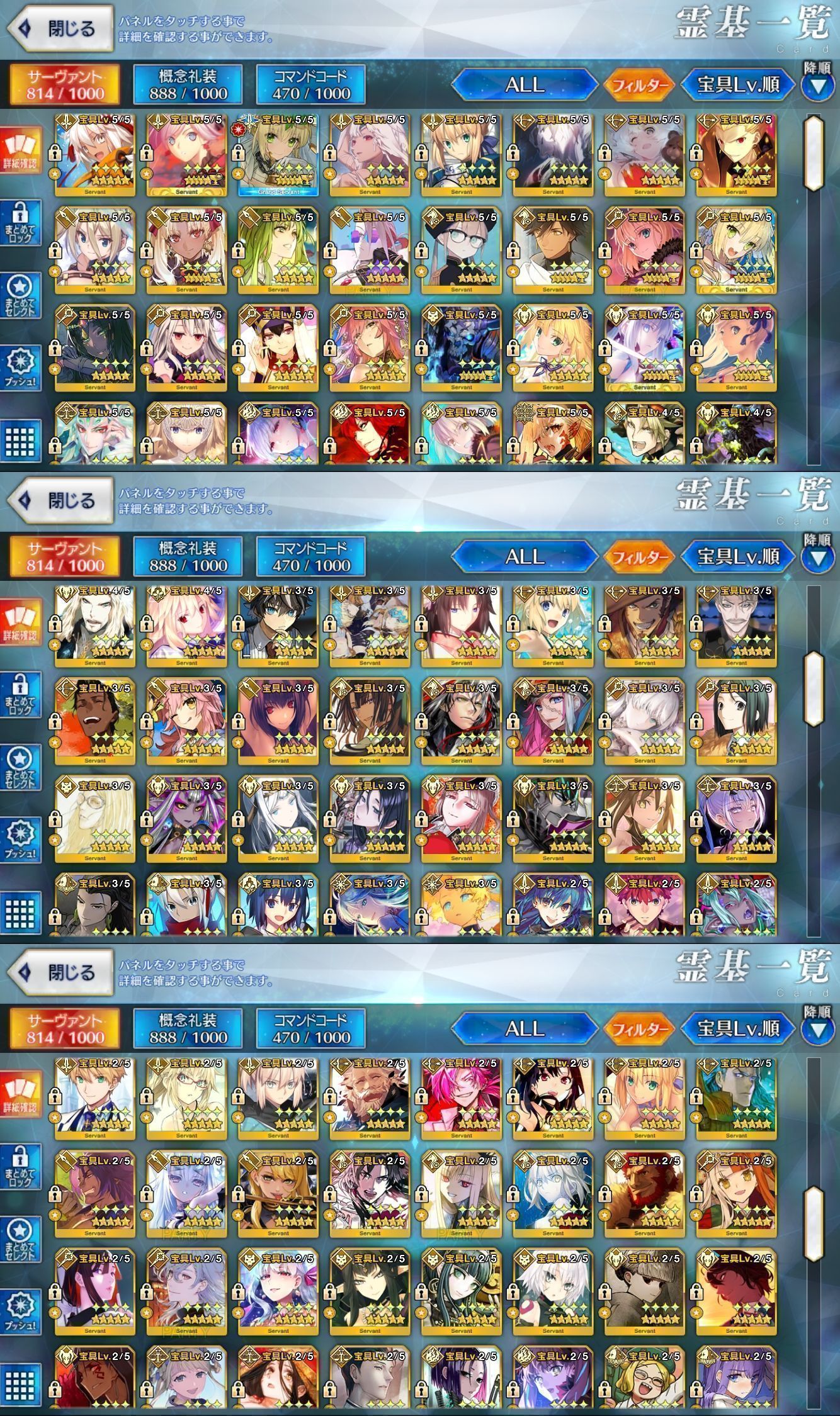 星5サーヴァントの数は累計入手数です。