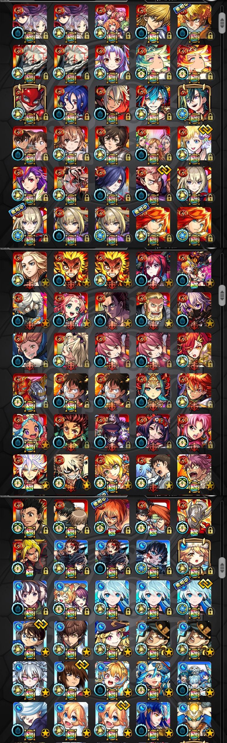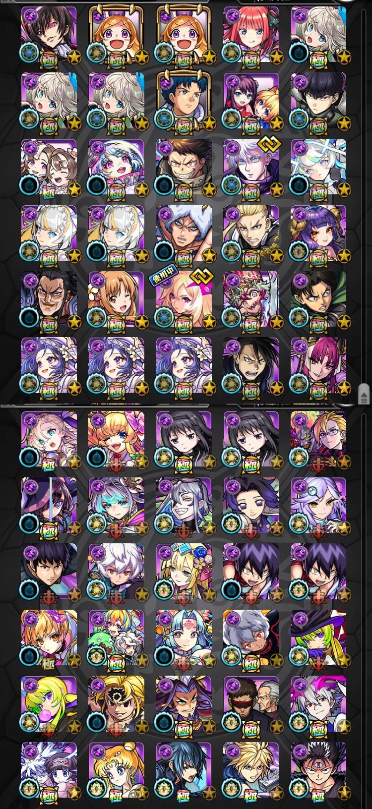 アカウント特定防止といった観点から、主なモンスターを抜粋して記載させていただいております。