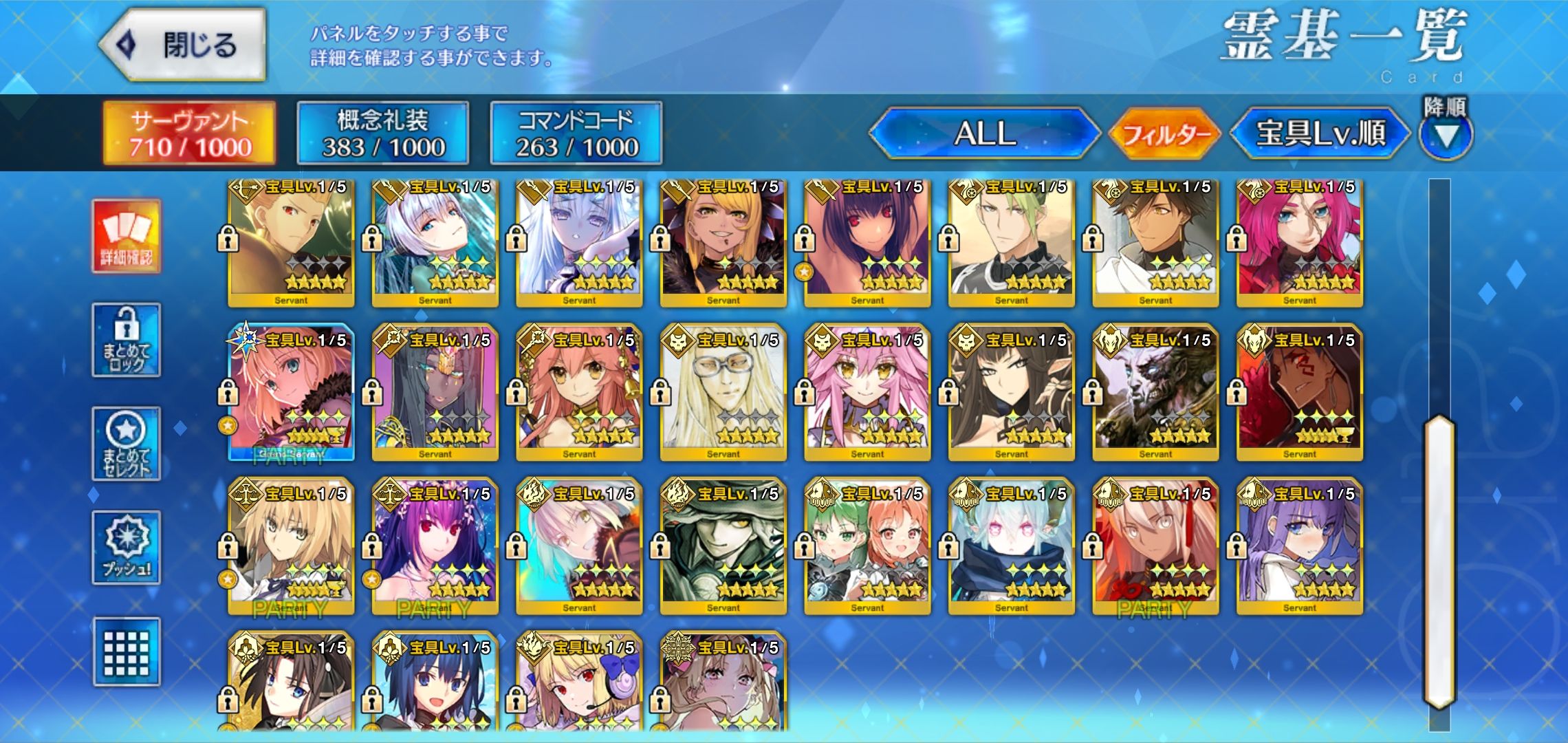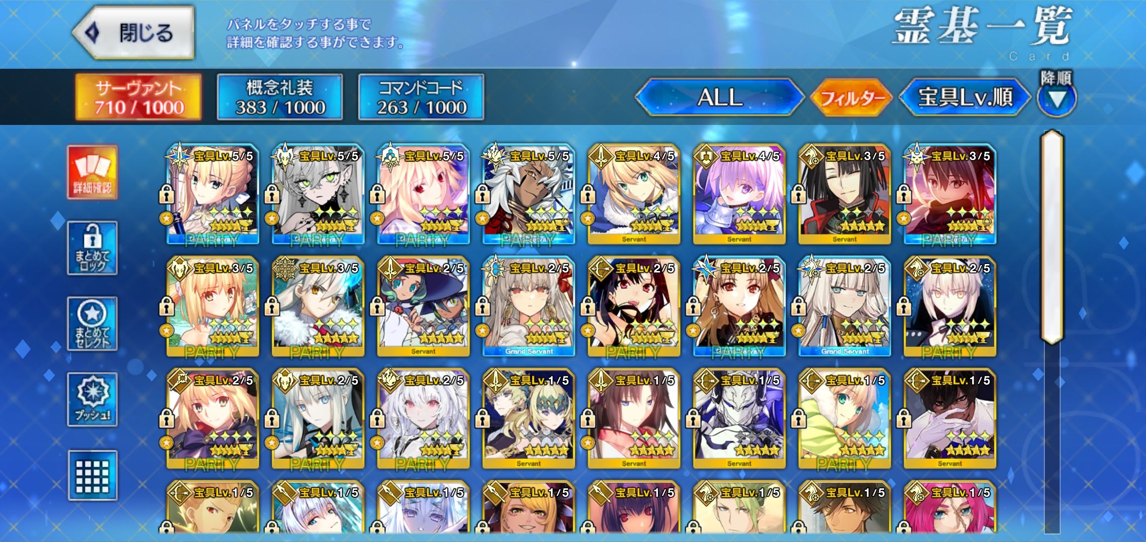 重複分は宝具強化に使用しているため、累計入手数=★5サーヴァントの宝具レベル合計値となります。