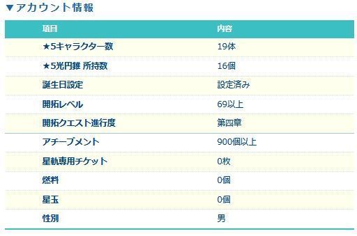 下記のようなキャラクター・光円錐を所持しております。(一部抜粋)