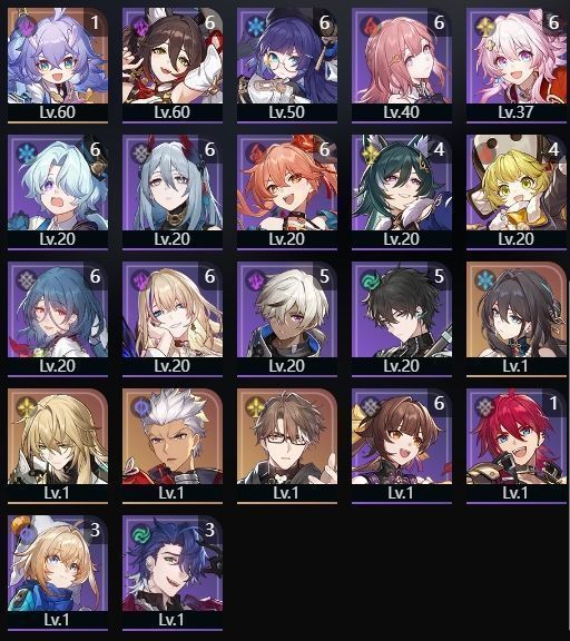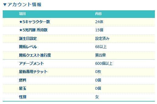 下記のようなキャラクター・光円錐を所持しております。(一部抜粋)