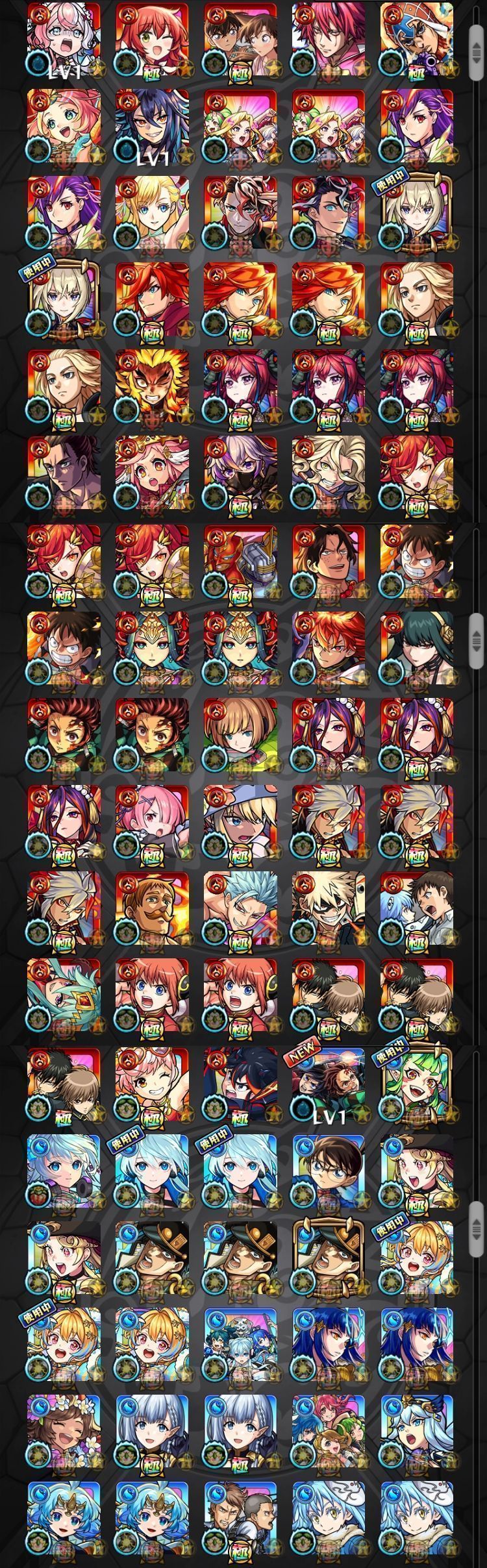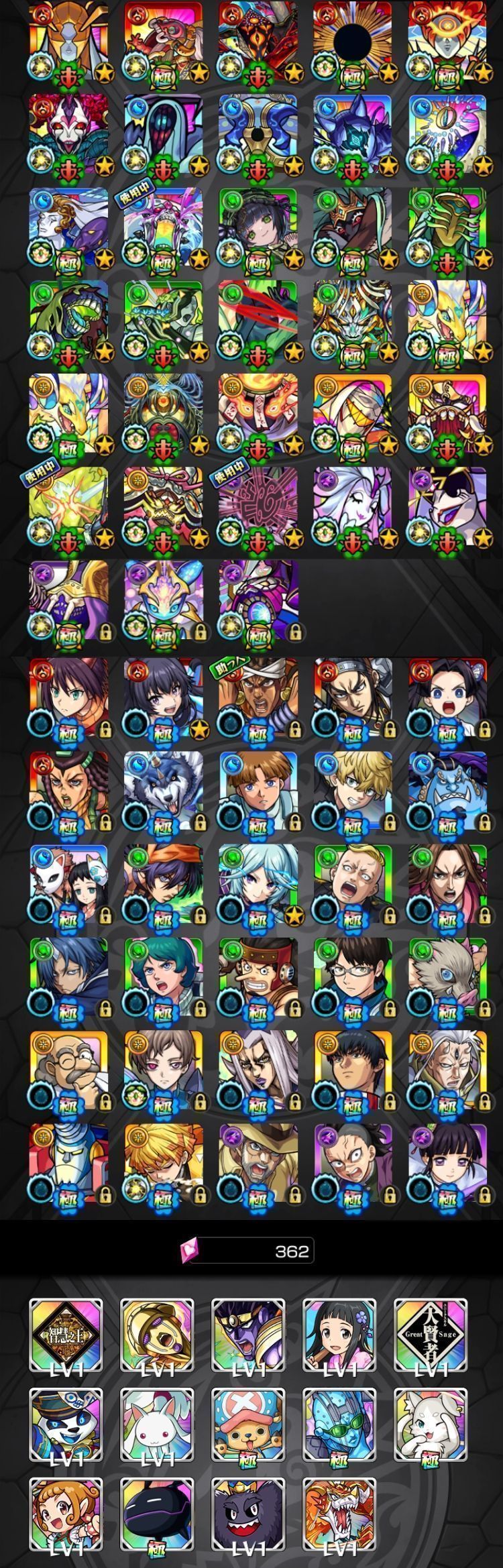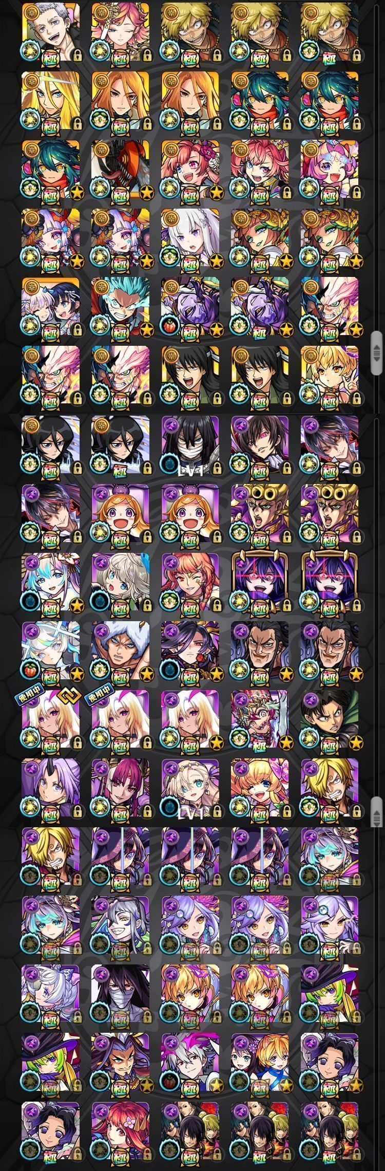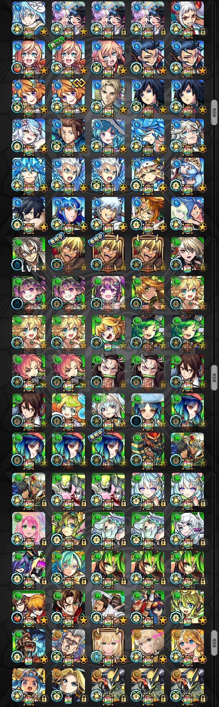 アカウント特定防止といった観点から、主なモンスターを抜粋して記載させていただいております。