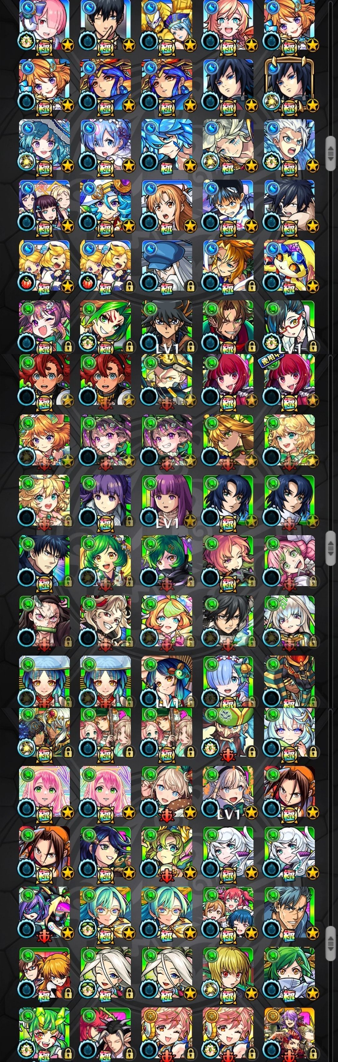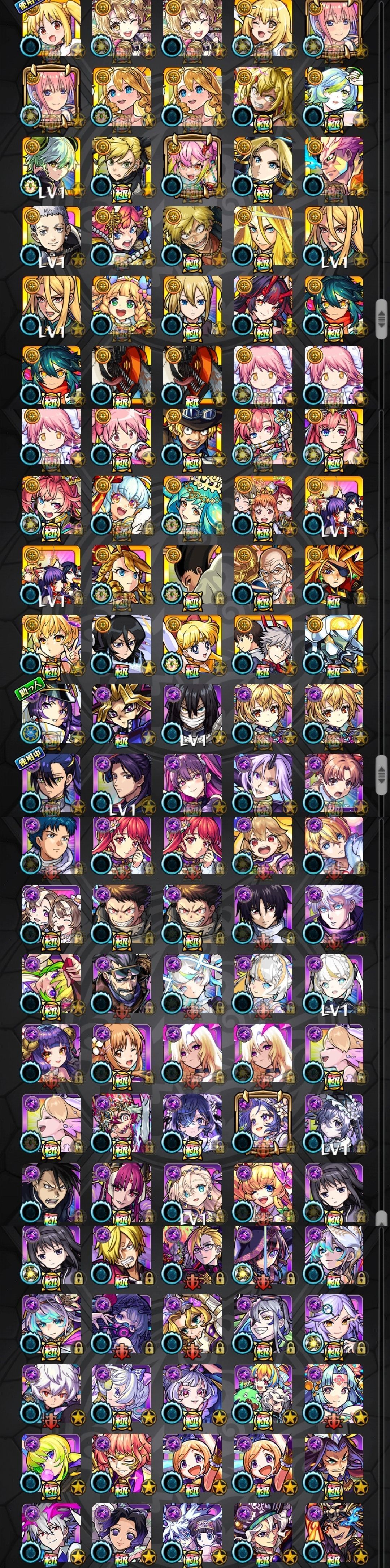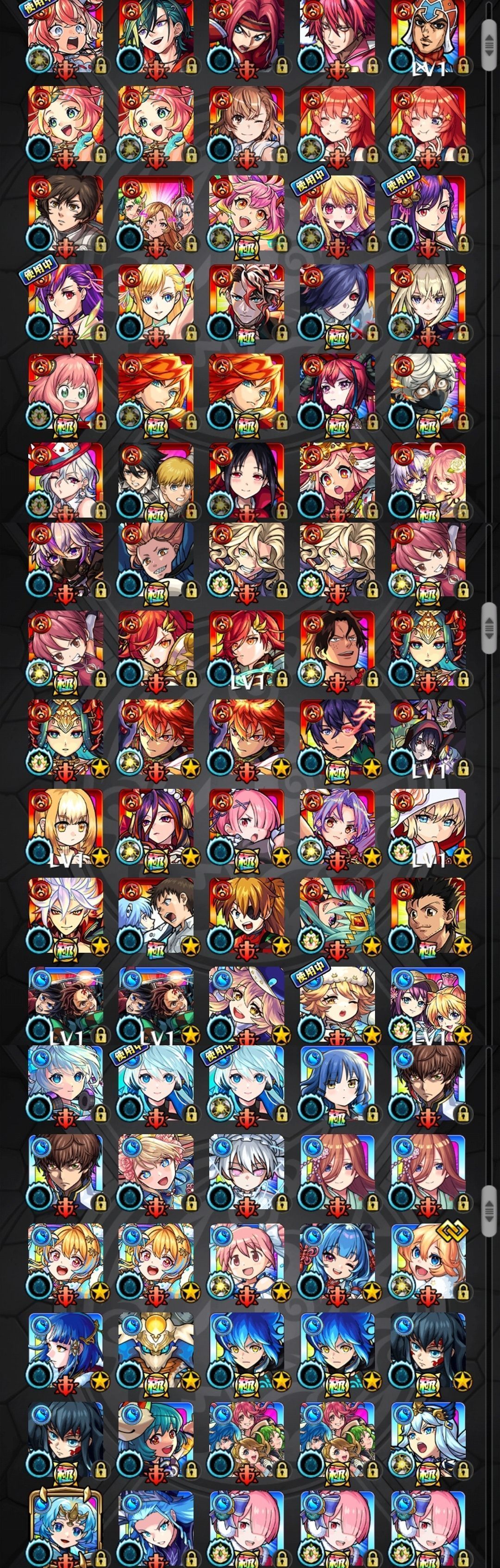 アカウント特定防止といった観点から、主なモンスターを抜粋して記載させていただいております。