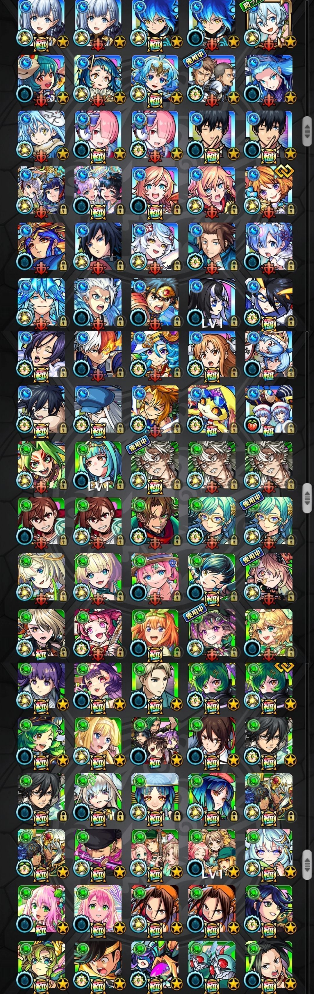アカウント特定防止といった観点から、主なモンスターを抜粋して記載させていただいております。