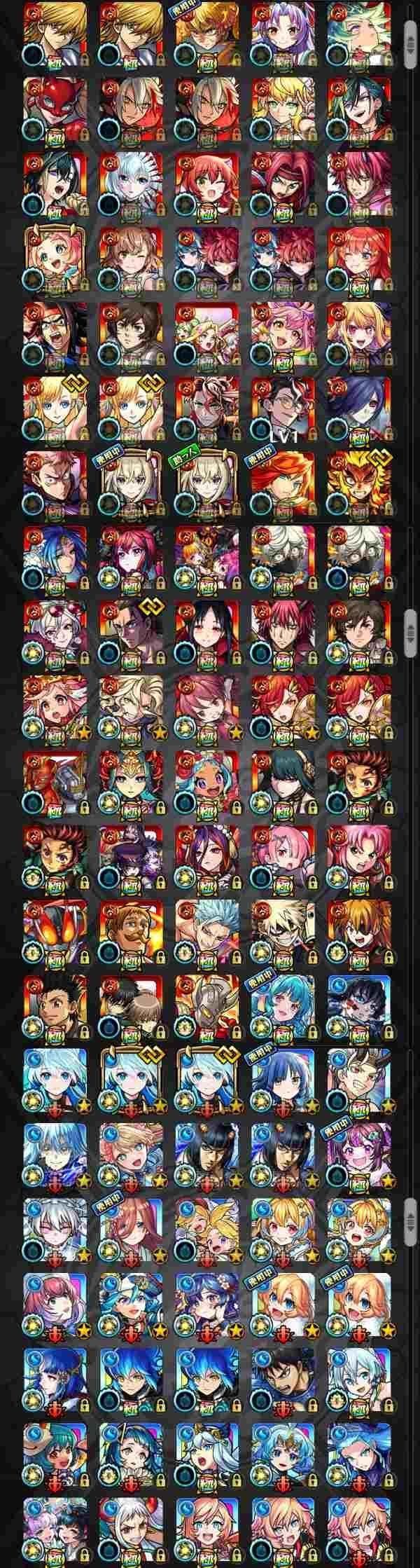 アカウント特定防止といった観点から、主なモンスターを抜粋して記載させていただいております。