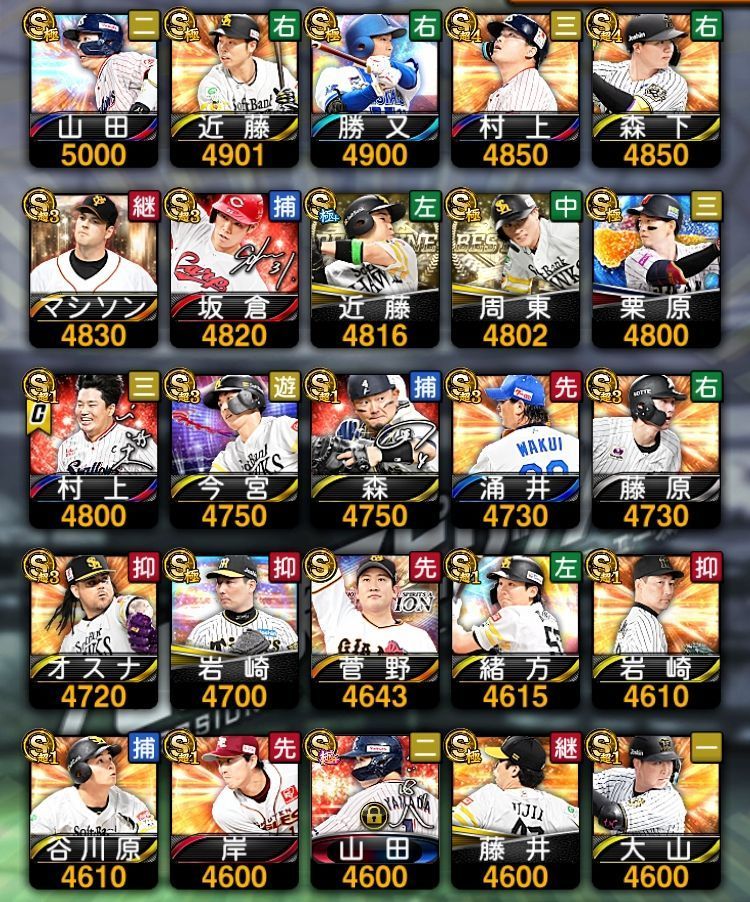 アカウント特定防止といった観点から、主な選手を抜粋して記載させていただいております。