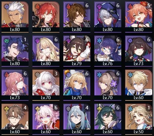 下記のようなキャラクター・光円錐を所持しております。(一部抜粋)
