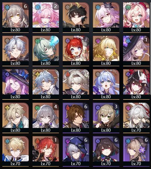 下記のようなキャラクター・光円錐を所持しております。(一部抜粋)