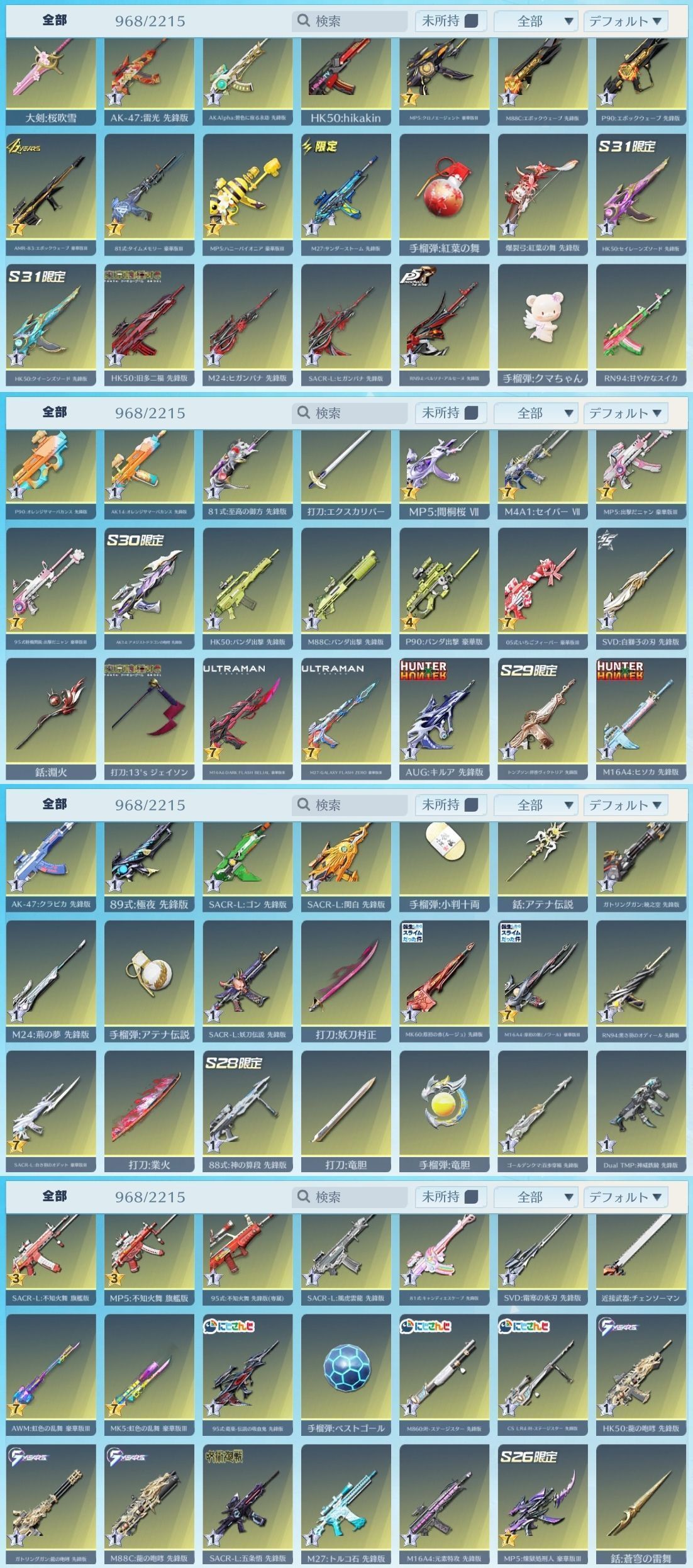 アカウント特定防止といった観点から主なスキンを抜粋して掲載しております。