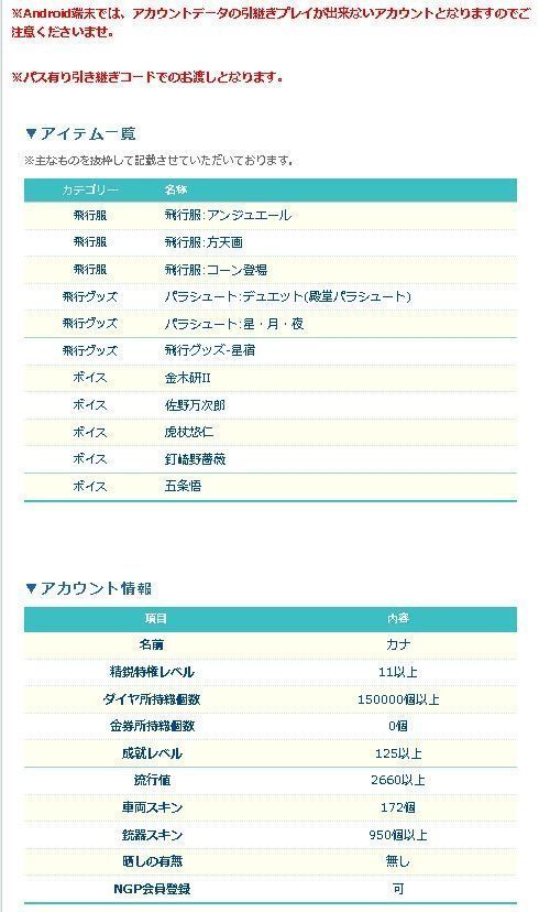 引退した一般プレイヤーから、直接マツブシが買取した廃課金アカウントとなります!