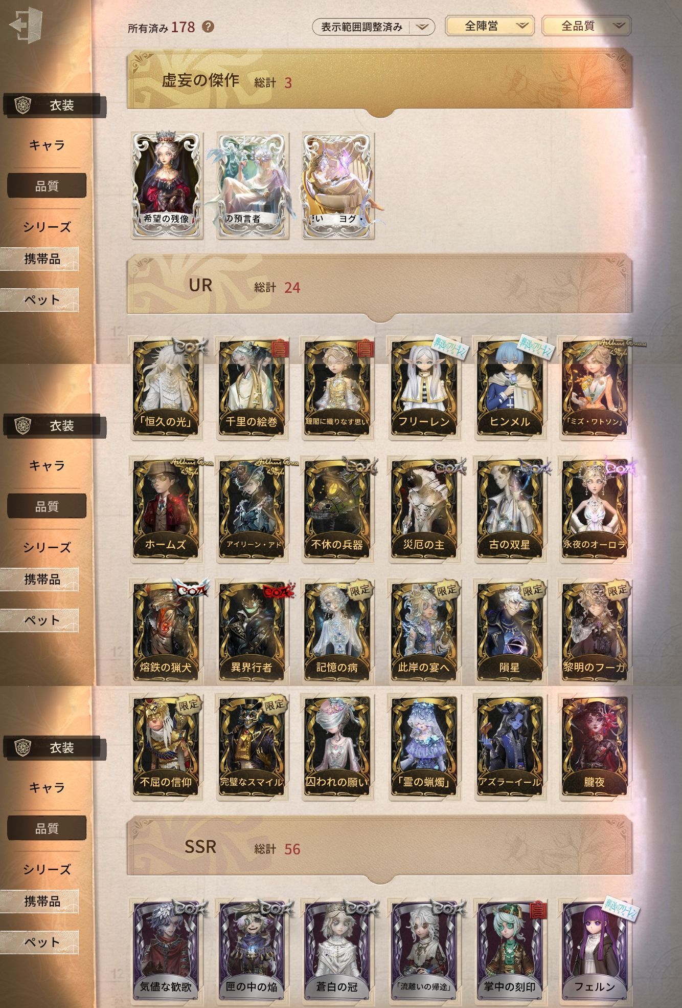 アカウント特定防止といった観点から、主な衣装を抜粋して記載させていただいております。