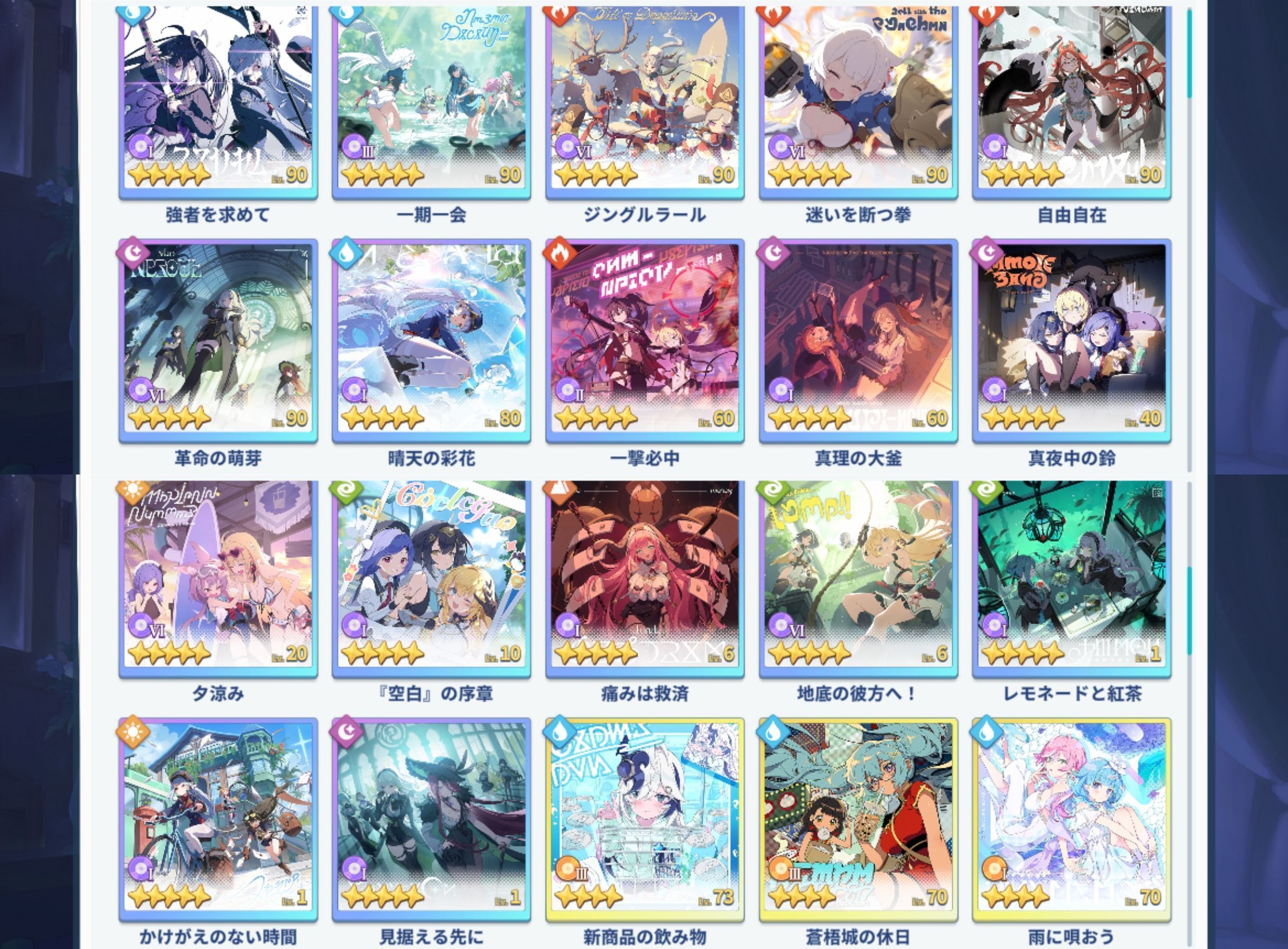 アカウント特定防止といった観点から、主なキャラクターを抜粋して記載させていただいております。