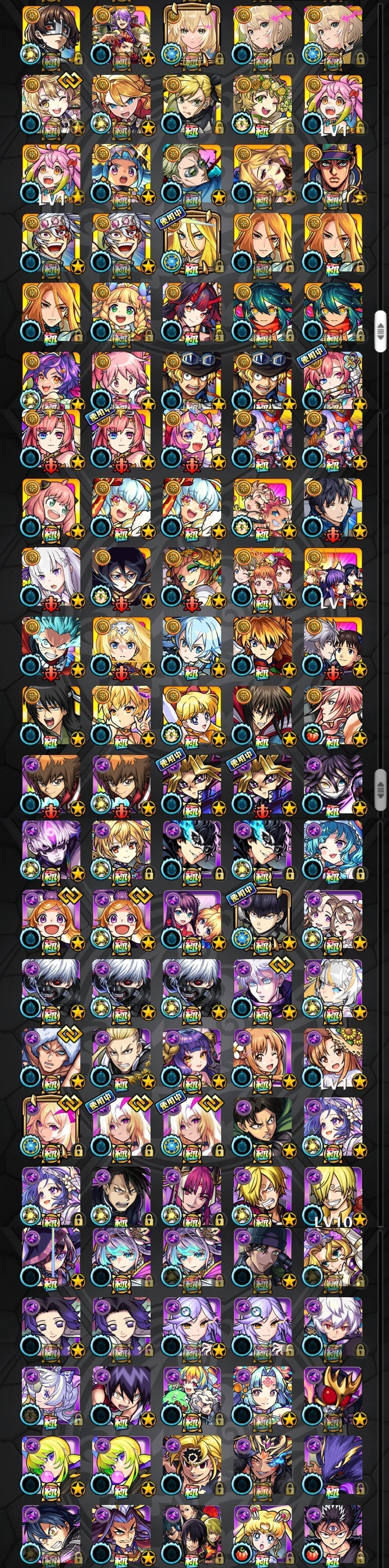 アカウント特定防止といった観点から、主なモンスターを抜粋して記載させていただいております。